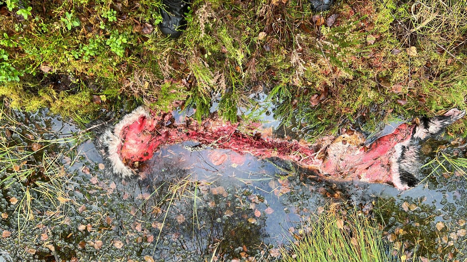 Kun aamu valkeni, metsästystoverit löysivät veri- ja raahausjälkiä. Koira löytyi ojasta noin 80 metrin päästä siitä, missä oli tutkapannan viimeinen paikannus. Sisusta oli jäljellä pää, selkäranka ja nahkoja, eli se oli syöty melkein kokonaan.