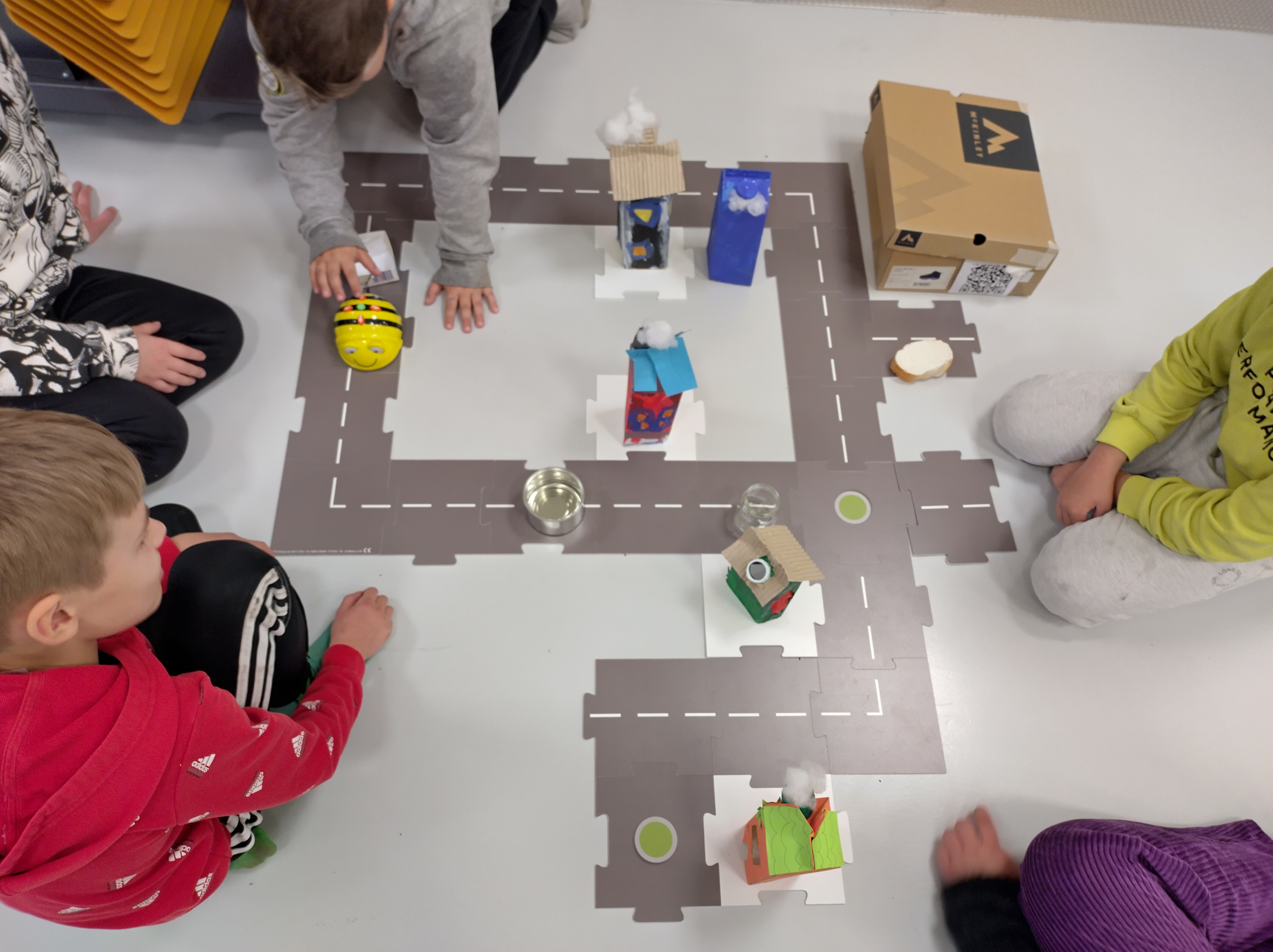 - Valitettavasti kaupungin kaduilta löytyi myös roskia, jotka sitten kerättiin Beebot-robotin peräkärryn kyytiin ja vietiin kierrätykseen Stormossenille. Kierrätyksen lisäksi opettelimme siis myös ohjelmointia, jotta saimme robotit kulkemaan oikeaan suuntaan, kertoo luokanopettaja Johanna Hännikäinen.