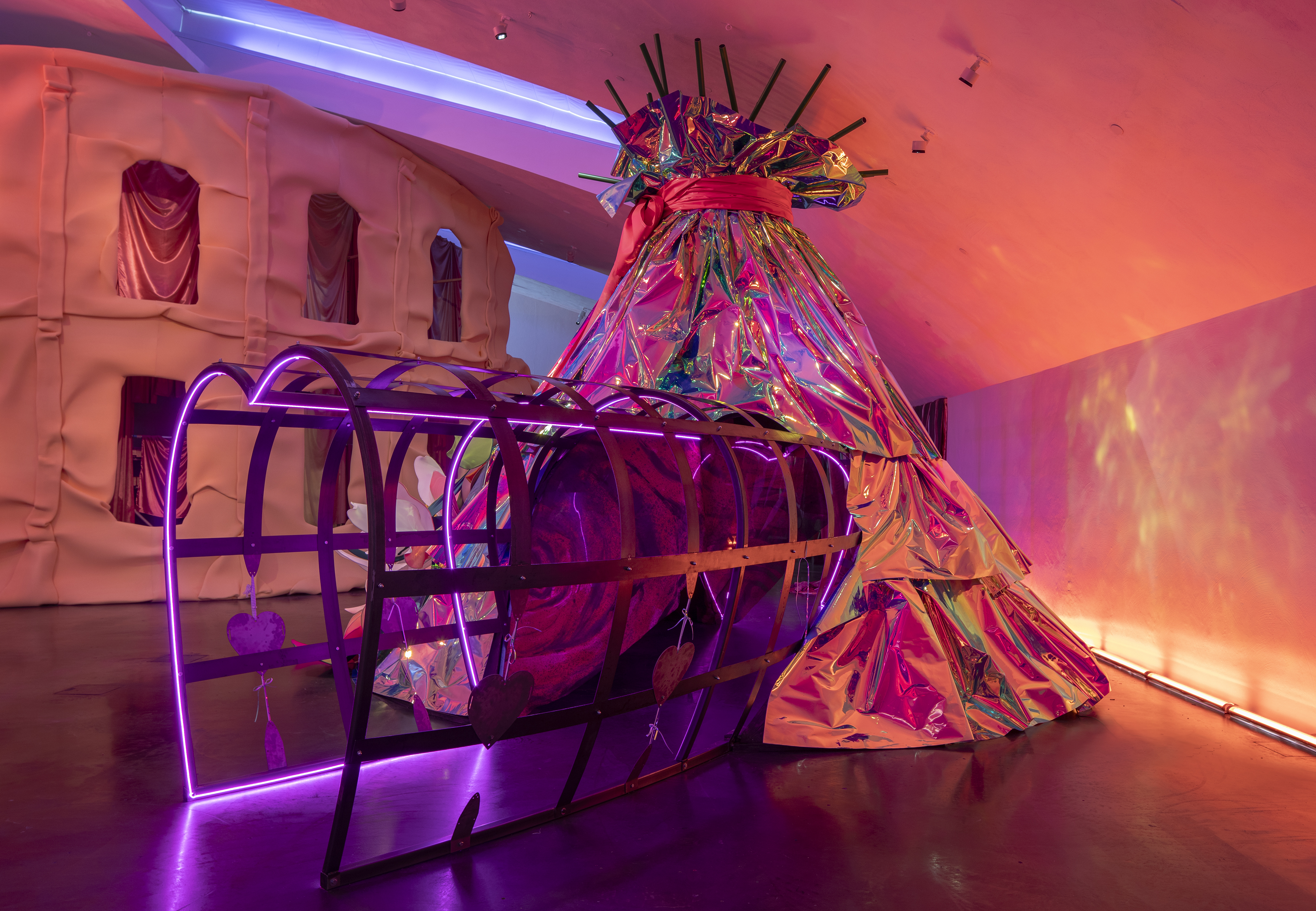 Ranskalaisen Pauline Curnier Jardinin (s. 1980) ensimmäinen yksityisnäyttely Suomessa muuntaa Kiasman näyttelytilan groteskiksi teemapuistoksi. Sen uumenista löytyvät elokuvateokset tarjoavat välähdyksiä naisten ja eri tavoin marginalisoitujen ihmisten osaan viihteessä ja vallankäytön kohteena. Miltä kristinuskon rituaalit, seksityö ja ikääntyminen voivat heistä näyttää? Näyttely avautuu Kiasmassa perjantaina.