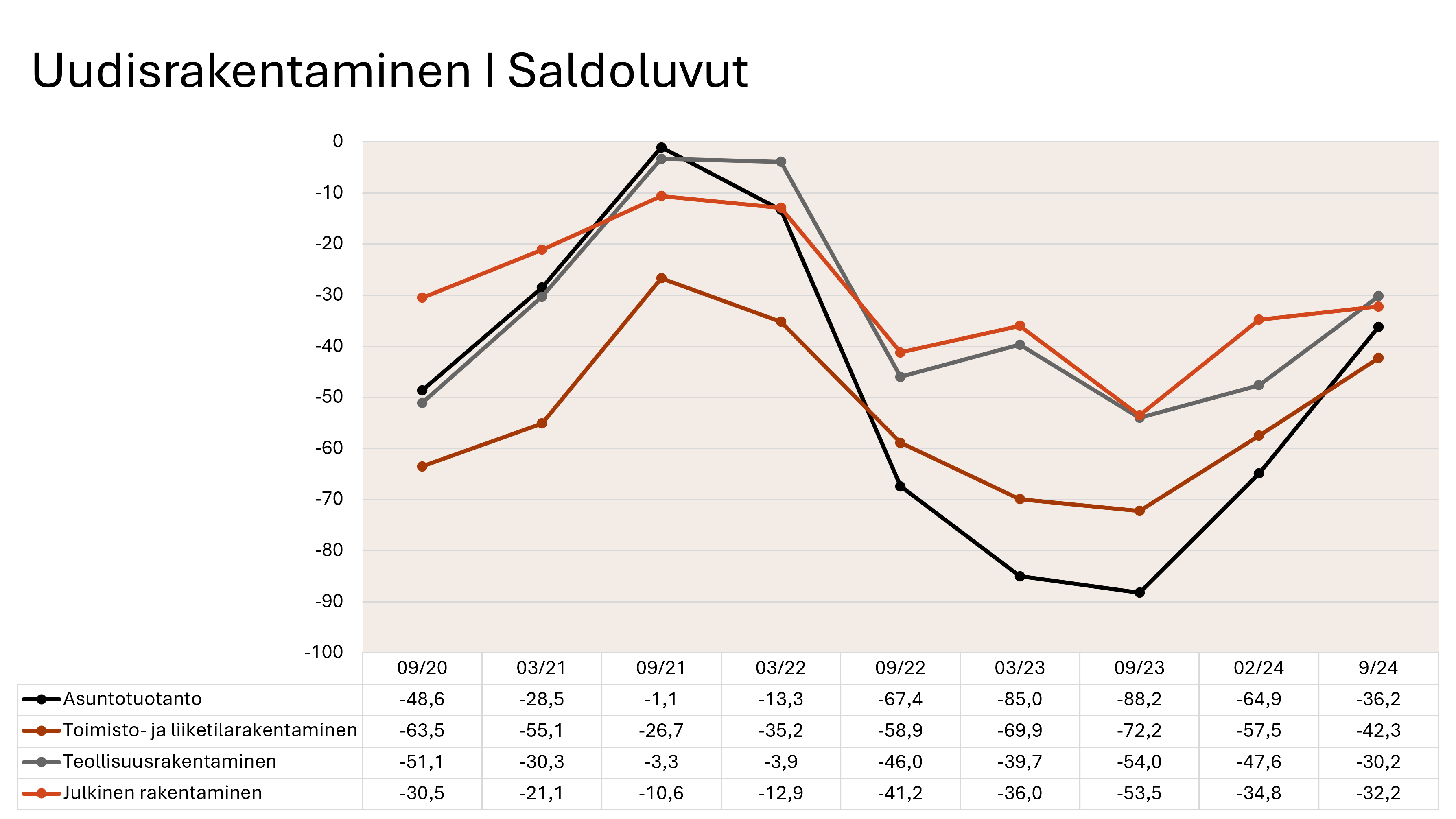 - Julkisuudessa esitetyistä kommenteista huolimatta rakentamisessa ei ole konkreettista näkymää paremmasta. Voisi luonnehtia, että pikemminkin päinvastoin.
