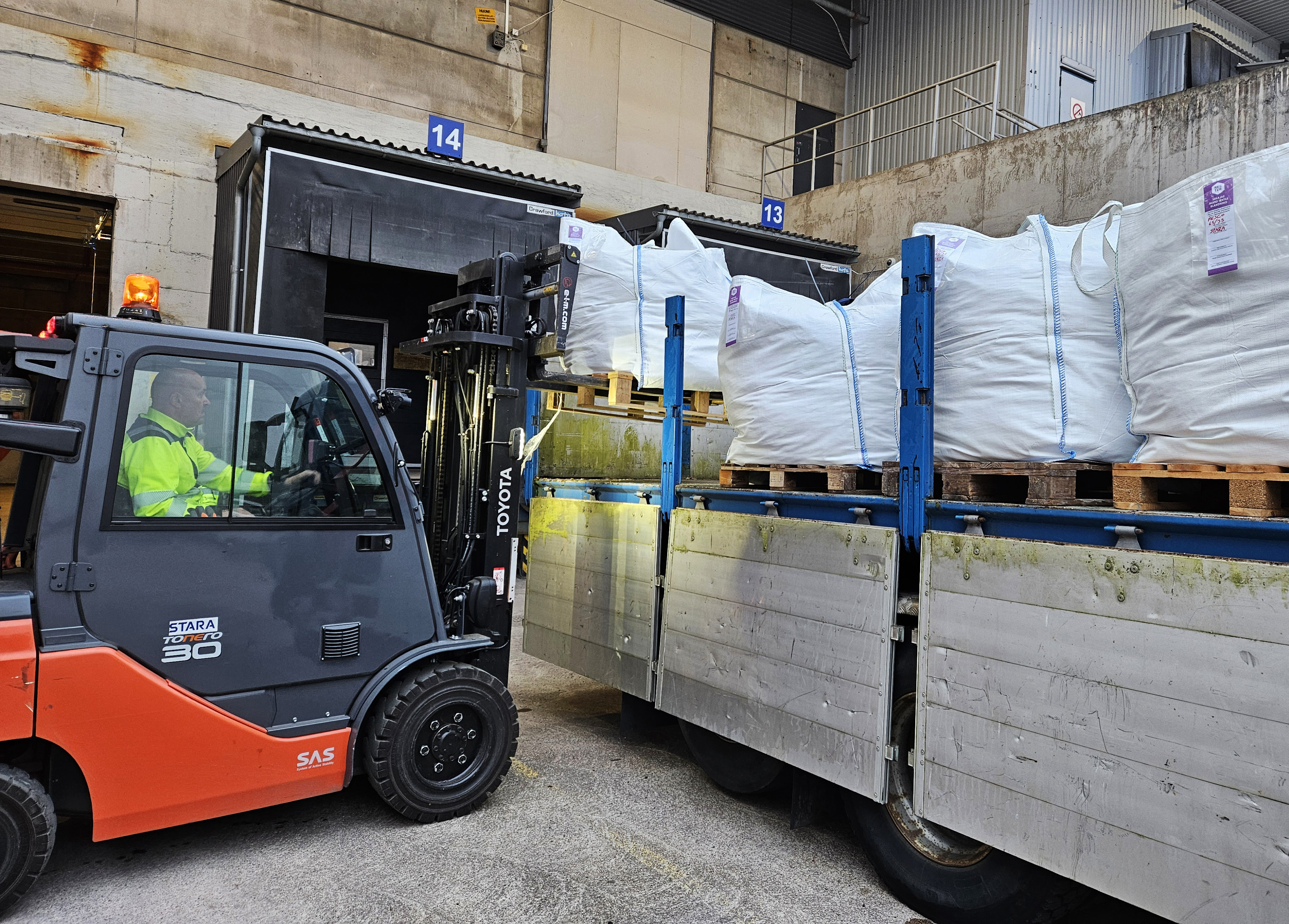 Työpäällikkö Arto Kainulainen Staran logistiikkayksiköstä kertoo, että kaupungin toimijat lajittelevat tekstiilijätteen ensin itsenäisesti omissa toimipisteissään. Kun tekstiilijätettä on kertynyt riittävästi, Stara noutaa sen säilytykseen. Lopulta Stara kuljettaa tekstiilijätteen omalta varastoltaan Resterin käsiteltäväksi.