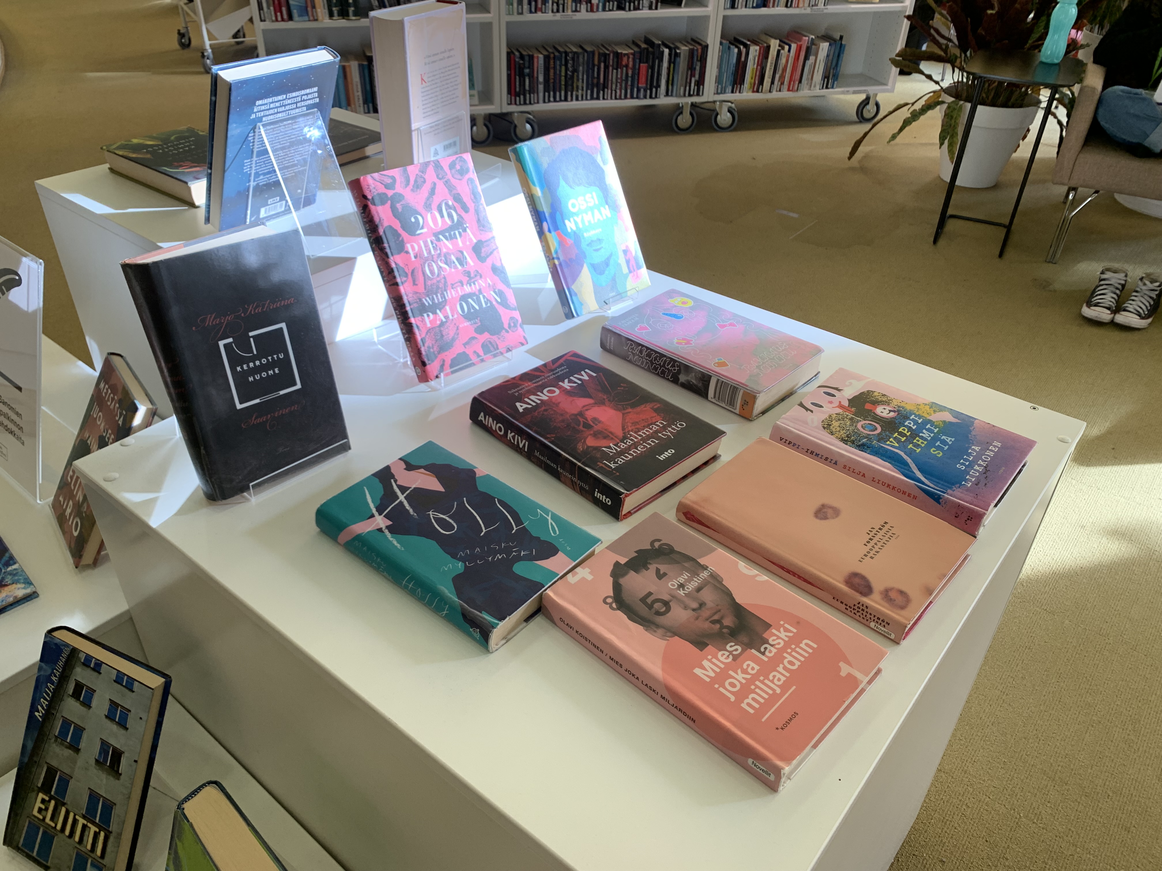 Moni kertoi tarttuvansa tuntemattomampaankin kirjaan herkemmin, kun se oli nostettu houkuttelevasti esille. Kirjaston kokoelmasta on myös mahdollista tehdä yllättäviä löytöjä, onhan meillä onneksi paljon laajempi valikoima kuin esimerkiksi kirjakaupassa. Emmekä onneksi ole pelkkä kokoelma, vaan meillä on myös osaava henkilökunta, joka osaa kaivella hyllyistä esille ne kiinnostavat helmet.