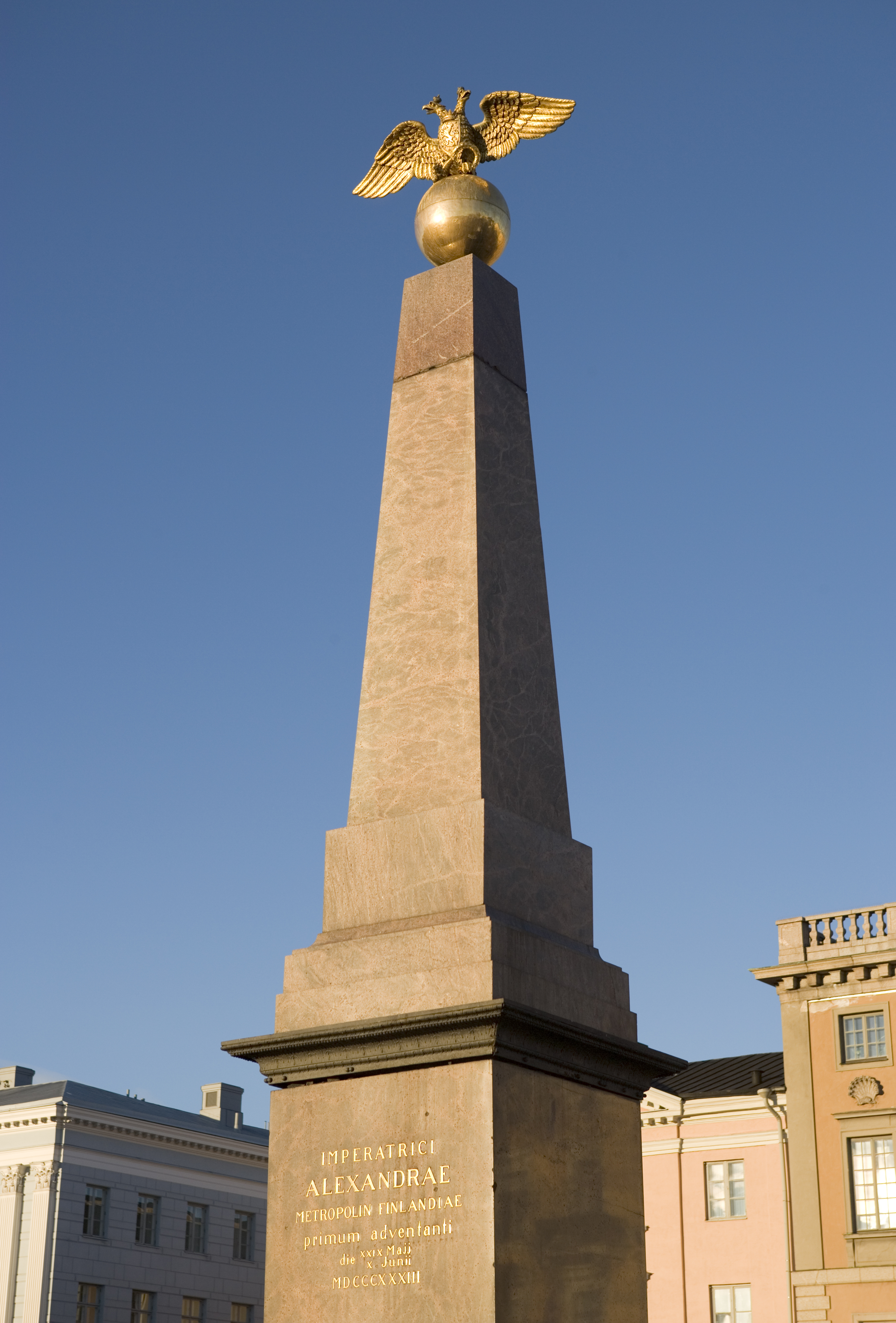Kejsarinnans sten formgavs av Carl Ludvig Engel (1778–1840). Obelisken i röd granit restes på Helsingfors salutorg 1835 till minne av den ryske kejsaren Nikolaj I:s gemål, den tyskfödda kejsarinnan Alexandras första besök i Helsingfors. Den förgyllda skulpturen som kröner obelisken föreställer en jordglob och den ryska dubbelörnen, symbolen för den ryska kejsardynastin. Örnen är utformad av den kände fågelmålaren Magnus von Wright (1805–1868).