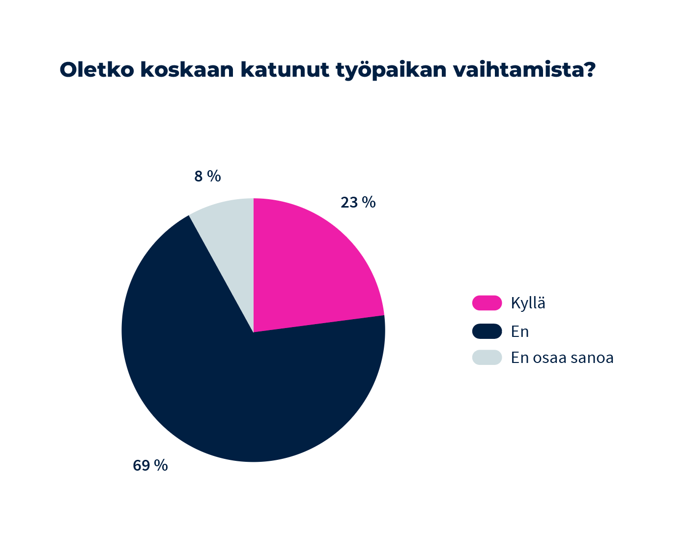 Lähes joka neljäs (23 prosenttia) on katunut työpaikan vaihtamista. Tämä selviää Duunitorin ja Taloustutkimuksen tuoreesta Työnhaku Suomessa 2024 -tutkimuksesta, joka on osa Kansallista rekrytointitutkimusta.