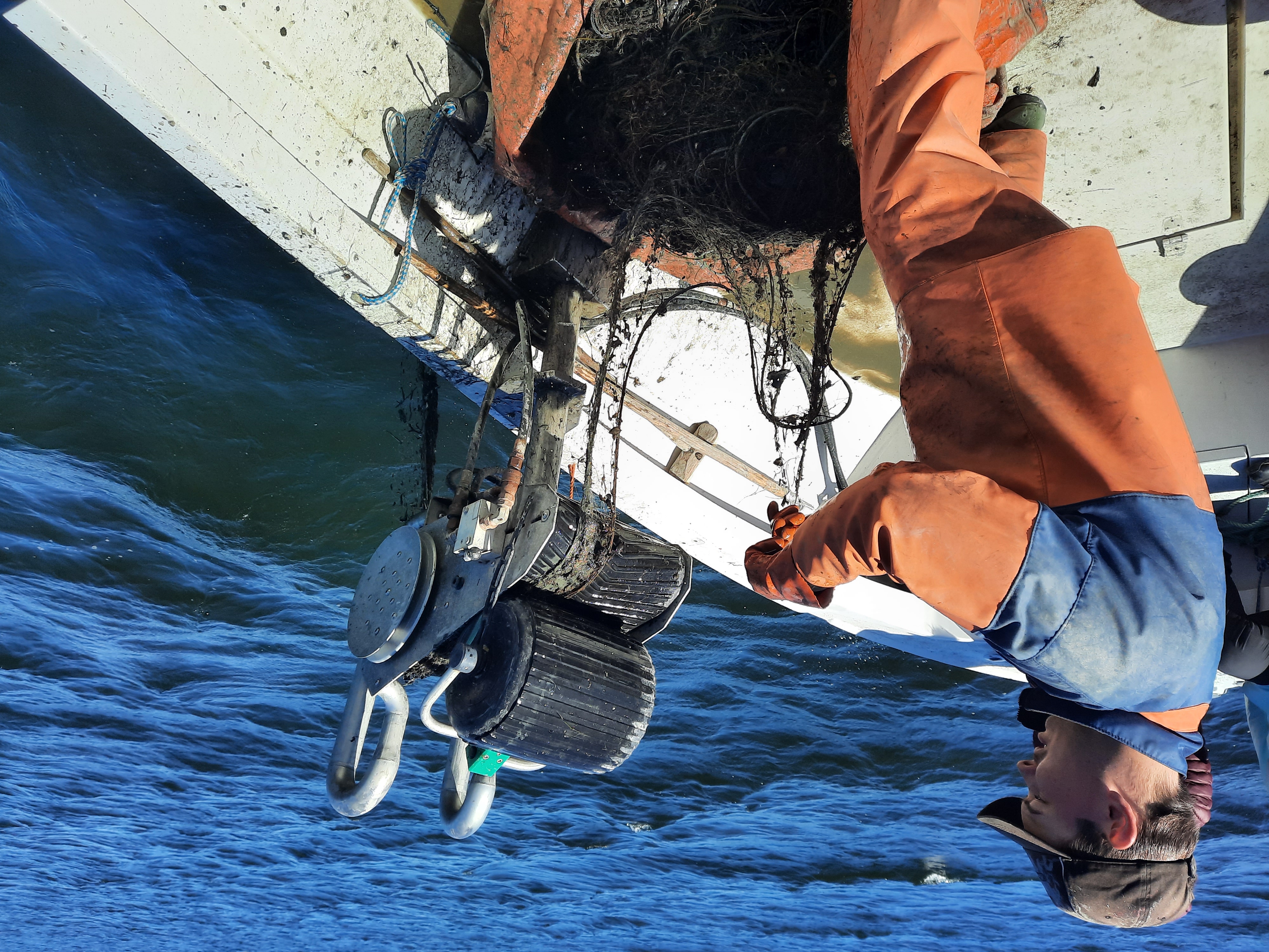 Re:Fish-hankkeessa nostetaan haamuverkkoa Rauman Mansikkakarilla toukokuussa 2024. Kuva Pekka Kotilainen (Syke). Julkaistavissa Suomen ympäristökeskusta ja Re:Fish-hanketta koskevassa uutisoinnissa.