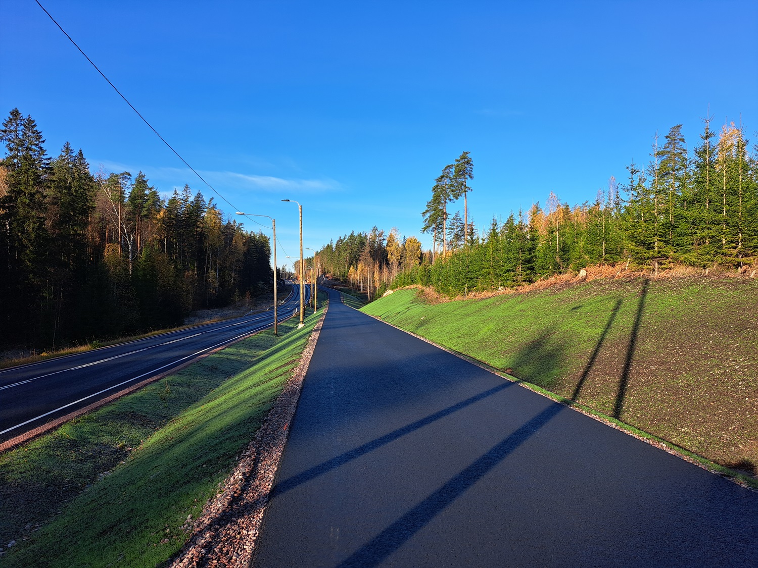 Ethän käytä vielä jalankulku- ja pyöräilytietä, vaikka se näyttää jo valmiilta. Väylää on nyt päällystetty puolet, ja loput päällystetään ensi keväänä.