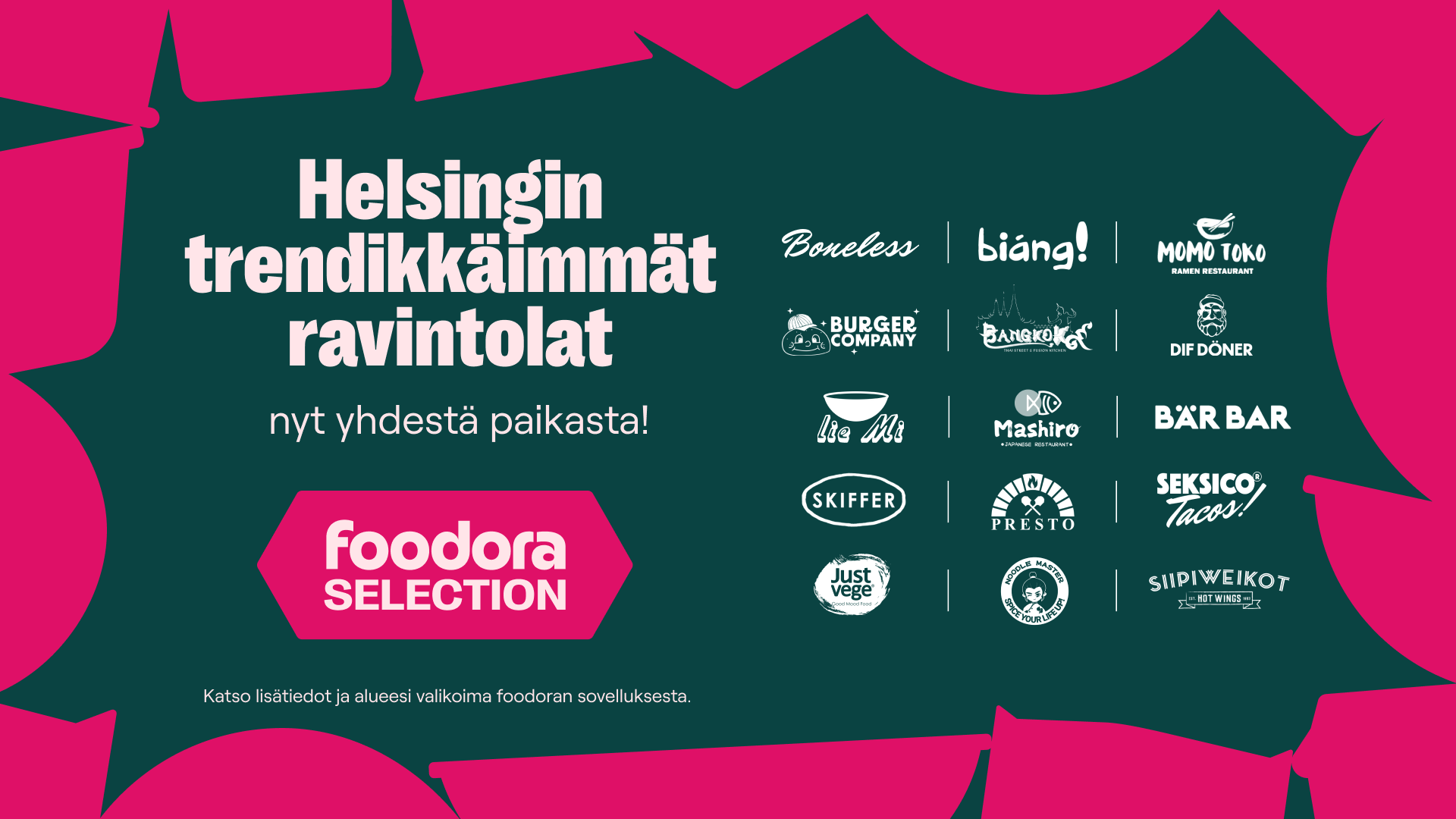 Foodora Selection on uusi osio Foodoran sovelluksessa, joka kokoaa yhteen Helsingin tämän hetken kiinnostavimmat ravintolat. Foodora Selection -ravintolat ovat joko täysin uusia tulokkaita Foodoran sovelluksessa tai jo vakiintuneita suosikkeja. Uusi ohjelma käynnistyy maanantaina 4.11.2024.