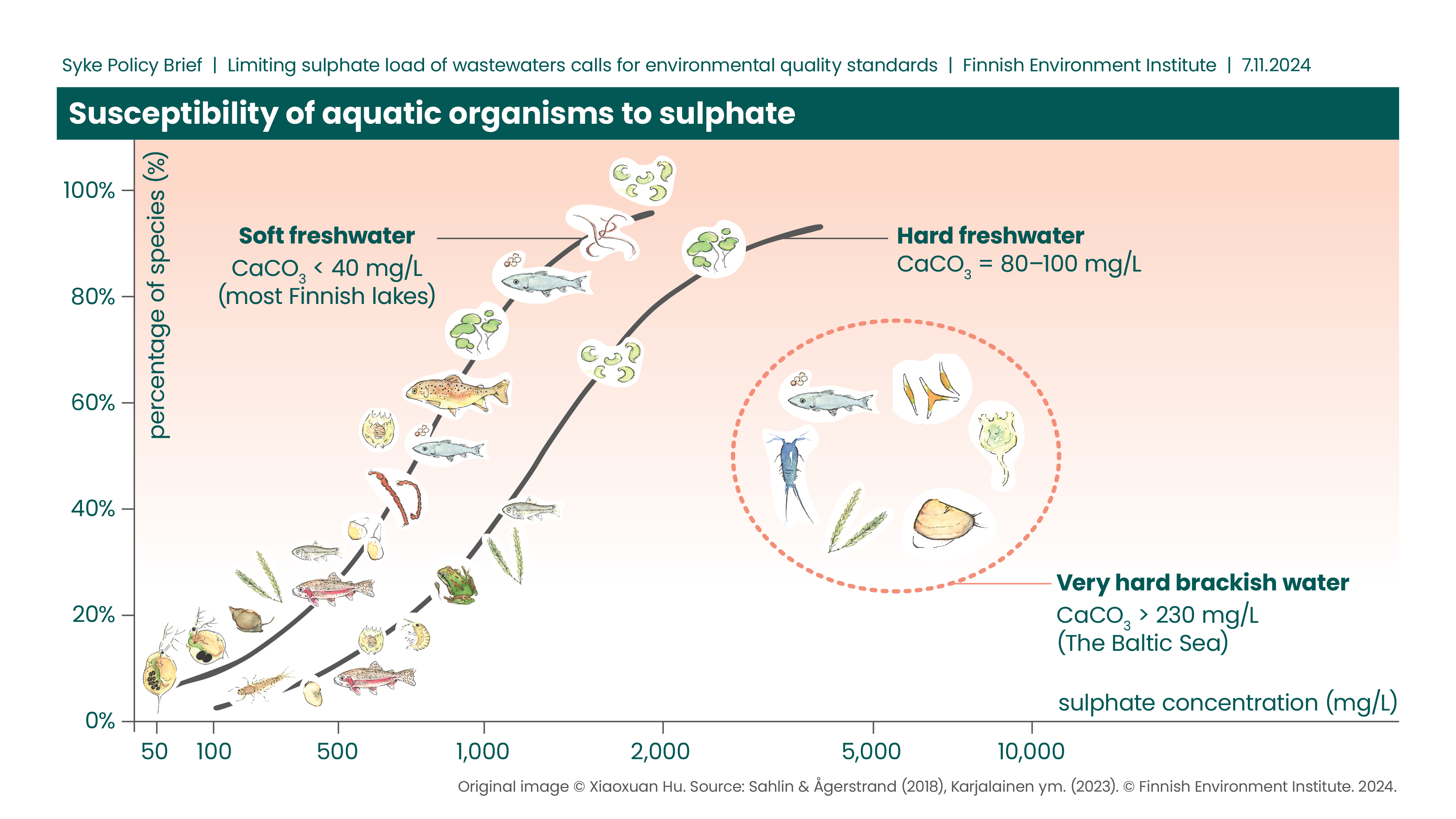 The concentration of sulphate that is harmless to organisms has been studied by the University of Jyväskylä and the Finnish Environment Institute. “Toxicity tests indicate that a high load may have adverse effects on aquatic organisms, especially in lakes with naturally low sulphate concentration. In the Baltic sea, organisms adapted to salinity appear to tolerate much higher sulphate concentrations than those in lakes,” says Matti Leppänen, Senior Researcher at the Finnish Environment Institute.