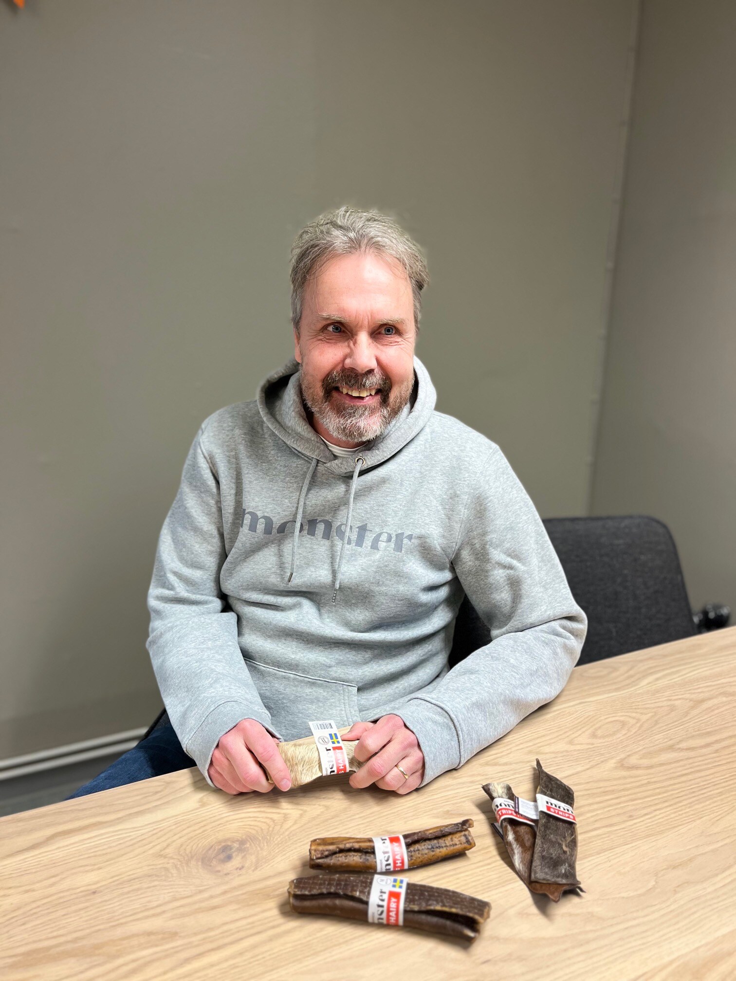 Nahasta valmistetut koiranpuruluut valmistetaan paistamalla rullattu nahka toivottuun muotoon. Monsterin puruluissa uusimpana versiona ovat Hairy-puruluut, joista karvojakaan ei ole poistettu vaan nahka on paistettu mahdollisimman minimaalisen käsittelyn jälkeen. Nahkasta valmistetut puruluut ovat sitkeitä ja niiden pureskelu on koirille mieleistä ajanvietettä. Nahkainen luu ei vahingoita koiran hampaita eikä siitä lohkea teräviä palasia, jotka voisivat vahingoittaa koiran suolistoa. Monster -puruluita ei valkaista valmistusprosessissa lainkaan ja niinpä valmiista puruluusta voi nähdä esimerkiksi minkävärisestä naudasta raaka-aine on peräisin. Ensin ajattelimme, että kuluttajat voisivat vierastaa luiden ulkonäköä, mutta käytännössä tilanne onkin ollut päinvastainen ja luonnollisuus selvästi puhuttelee, selittää maajohtaja Taponen.