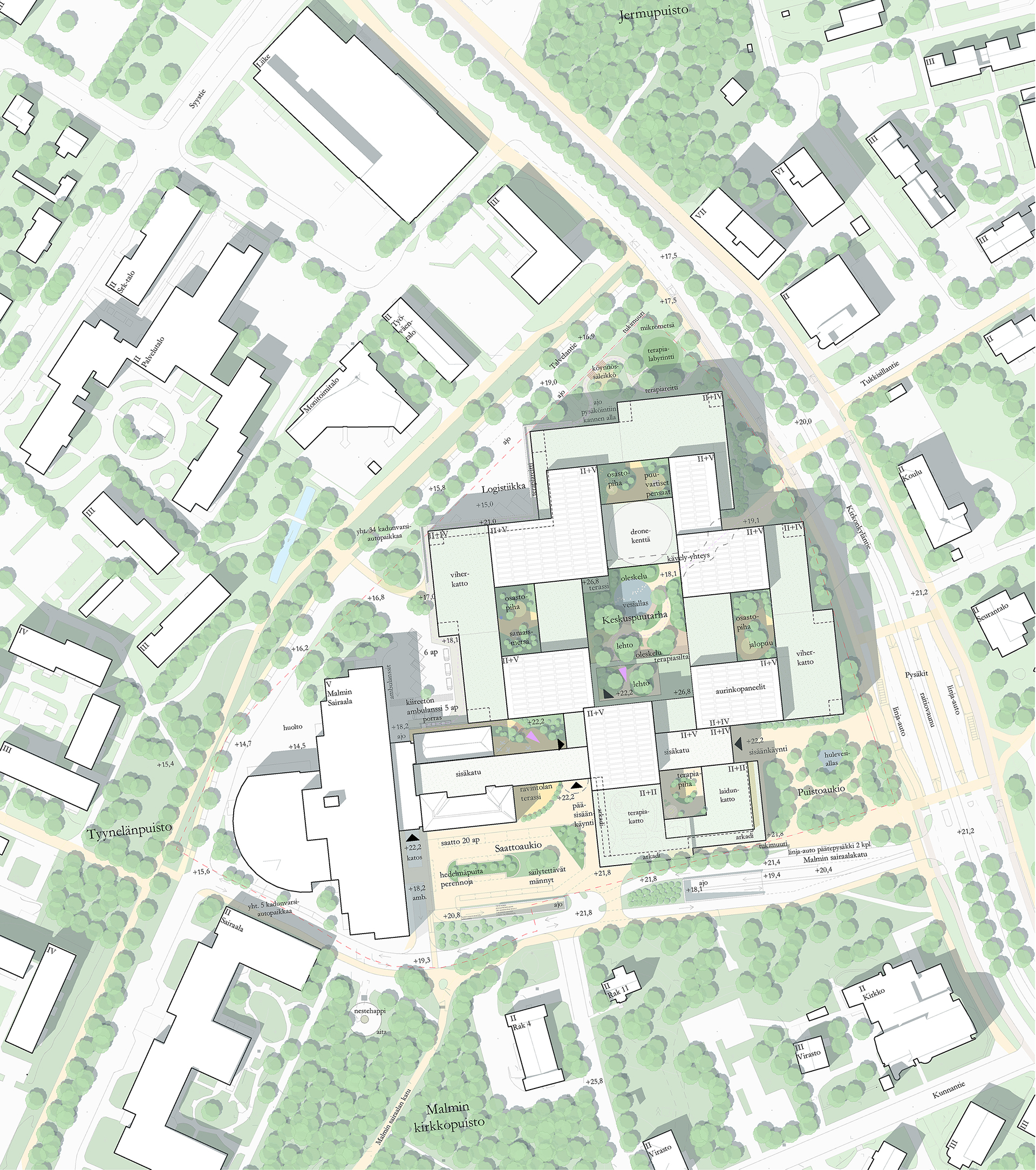 Malmin uuden sairaalan arkkitehtuurikilpailun voittajasuunnitelmassa luonto on läsnä