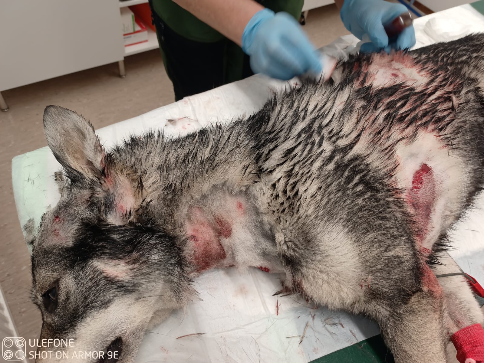Puremajälkiä löytyi koiran päästä, kaulasta, etujaloista ja kyljistä molemmin puolin selkärankaa.Koira sinnitteli kuitenkin neste- ja lääketiputuksen turvin viikon verran, jonka jälkeen sen oireet pahenivat ja tila heikkeni niin, että eläinlääkäri päätti lopettaa koiran kärsimykset.