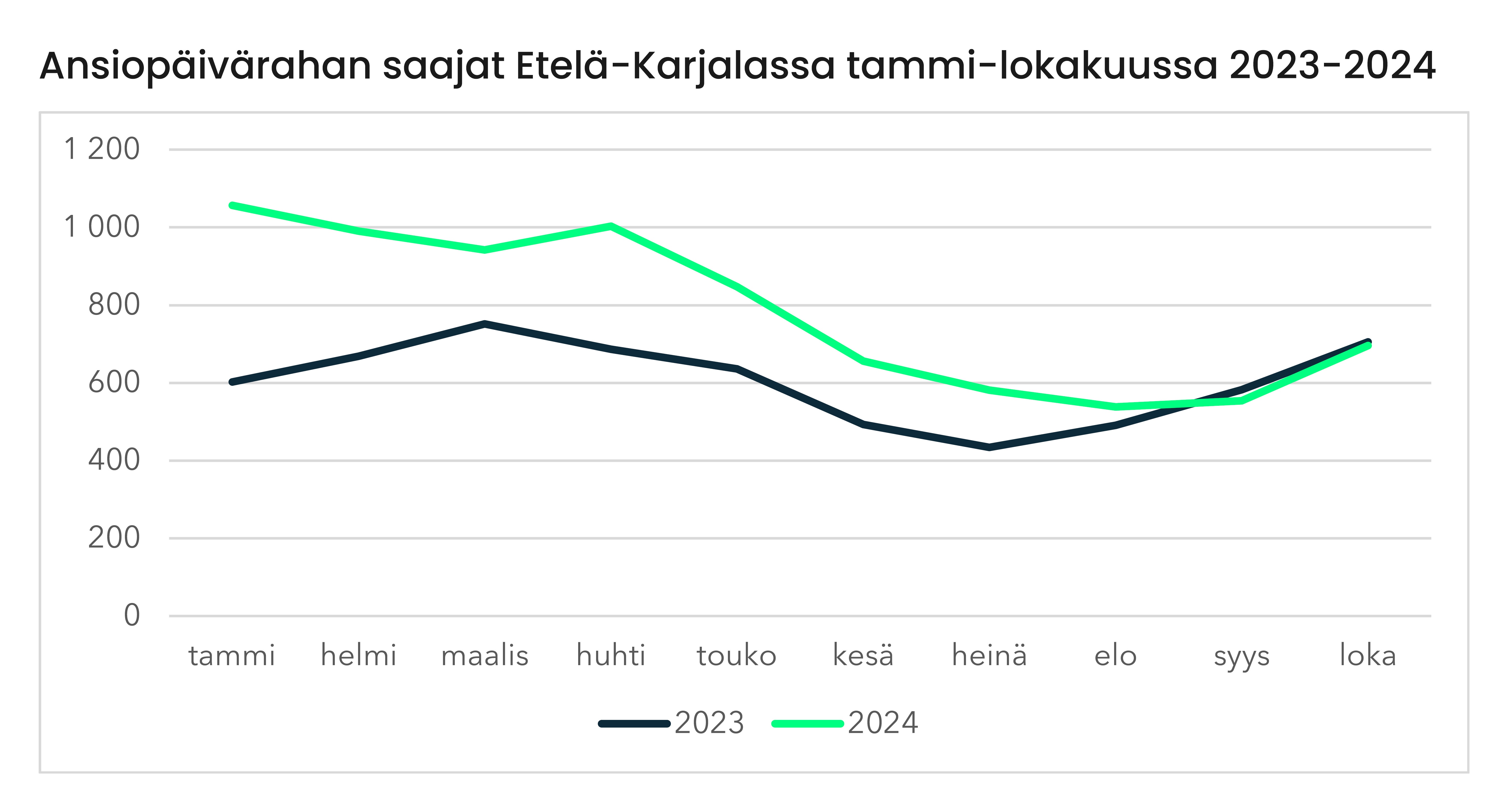 Ansiopäivärahan saajien määrän vuosikehitys on mennyt tyypillisesti niin, että saajamäärät ovat alkaneet nousta syksyllä. Niin on käynyt tänäkin vuonna. Viime vuonna Etelä-Karjalassa käänne tapahtui elokuussa, tänä vuona pari kuukautta myöhemmin.