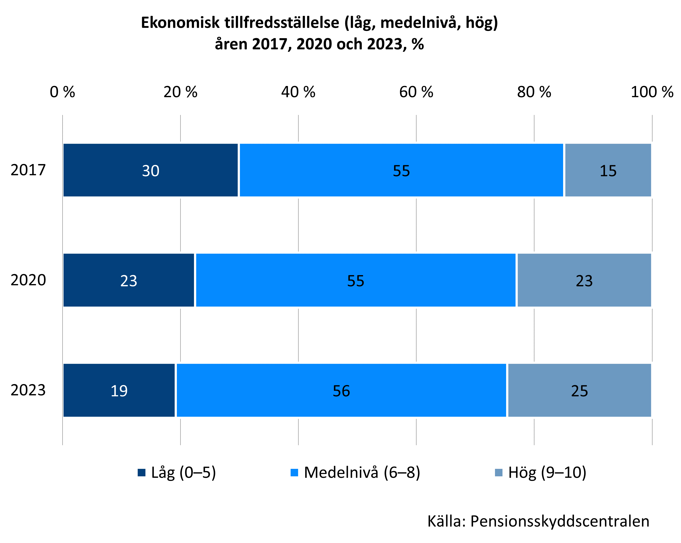 Mätt med olika frågor var ca sju eller fler av tio ålderspensionärer åtminstone på något sätt nöjda med sin ekonomi åren 2017, 2020 och 2023. Största delen av pensionärerna kunde enkelt täcka sina vanliga utgifter och betala nödvändighetsutgifter utan att ta av sina besparingar. Dessutom återstod pengar efter nödvändiga utgifter. De flesta skulle också ha klarat av att betala en större oväntad utgift.