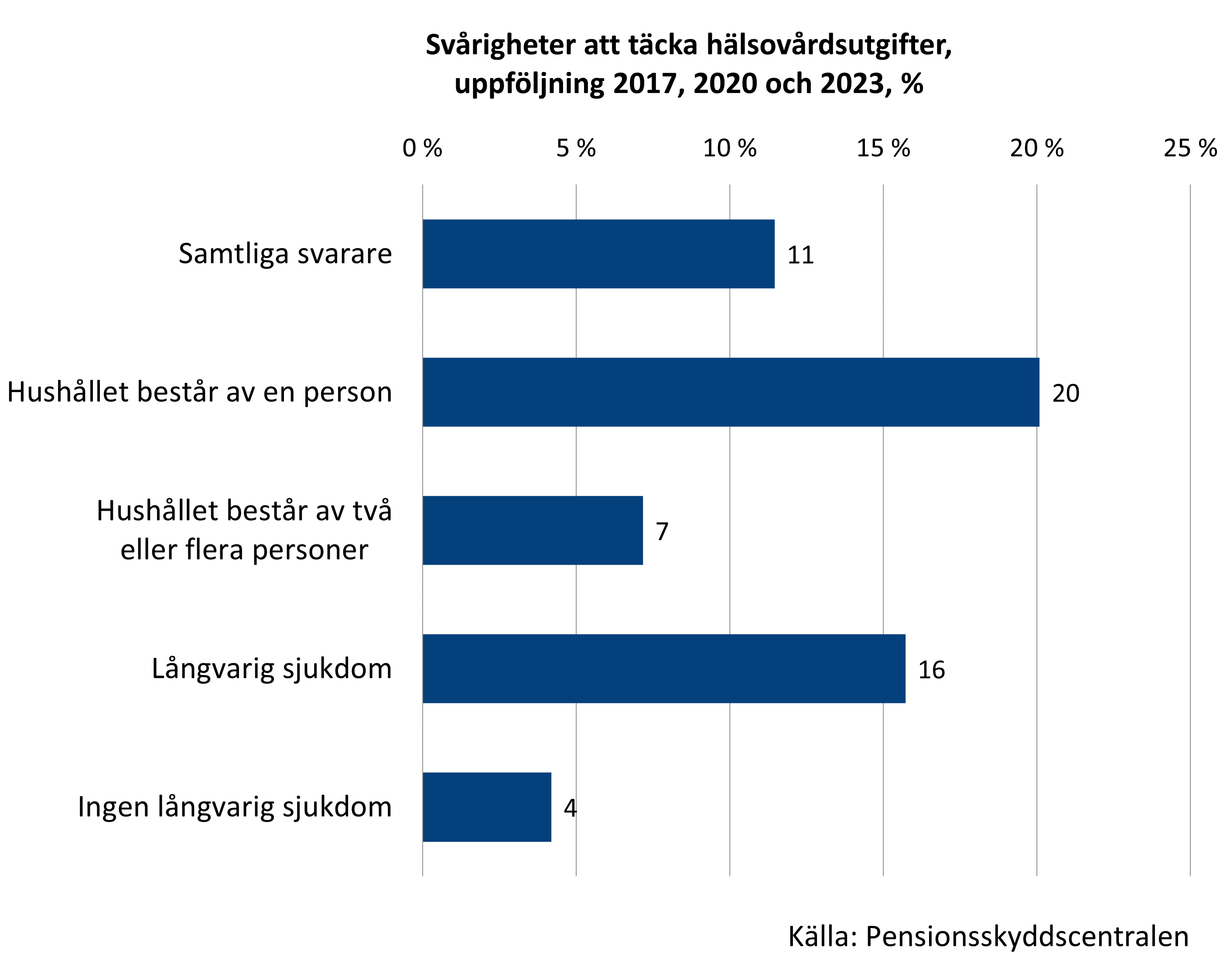 Drygt en tiondel av dem som svarade på enkäten bedömde att det inte fanns några pengar kvar efter de nödvändiga utgifterna under ett enda år. Ungefär var tionde hade åtminstone små problem med att betala hälsovårdsutgifter och läkemedel under alla år. Fler än så upplevde ekonomiska svårigheter under ett eller två av enkätåren.