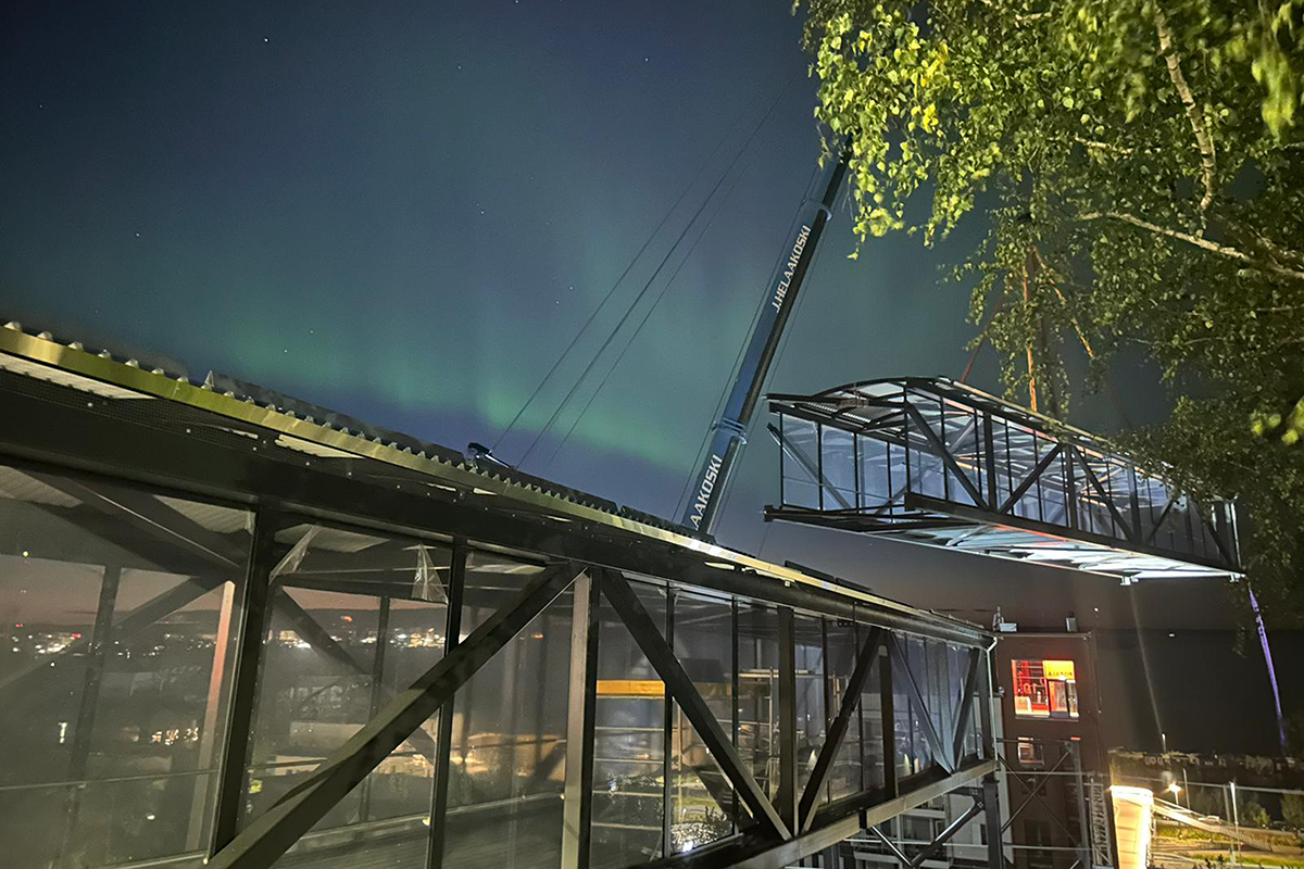 – Viimeisen siltalohkorakenteen ja hissikuilun väliin jäin 80 millimetrin rako. Se oli tarkka asennettava, mutta rakenne mahdollistaa sillan pituussuuntaisen elämisen lämpötilavaihtelujen mukaan, Haimila kertoo.