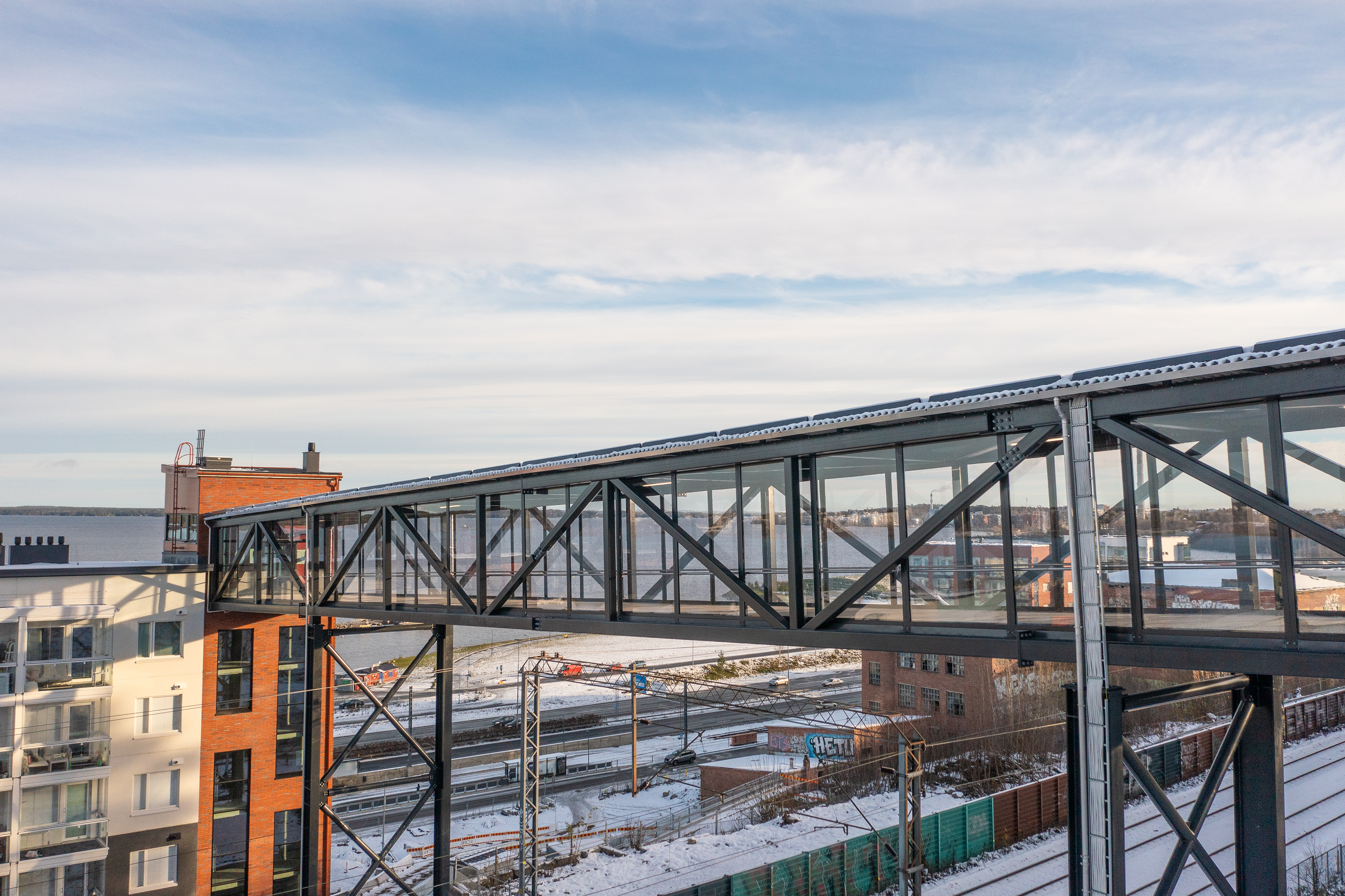 Uusi Santalahden ylikäytäväsilta Tampereella tarjoaa kauan kaivatun yhteyden Santalahden asuinkorttelin ja Pispalan valtatien välille. Kreate rakensi 70 metriä pitkän teräsrakenteisen sillan Tampere–Seinäjoki-radan yli suoraan asuinkorttelin hissi- ja porrastorniin. Mittavien teräsrakenteiden nostot tavanomaista ahtaamassa ja jyrkemmässä maastossa onnistuivat suunnitellusti.