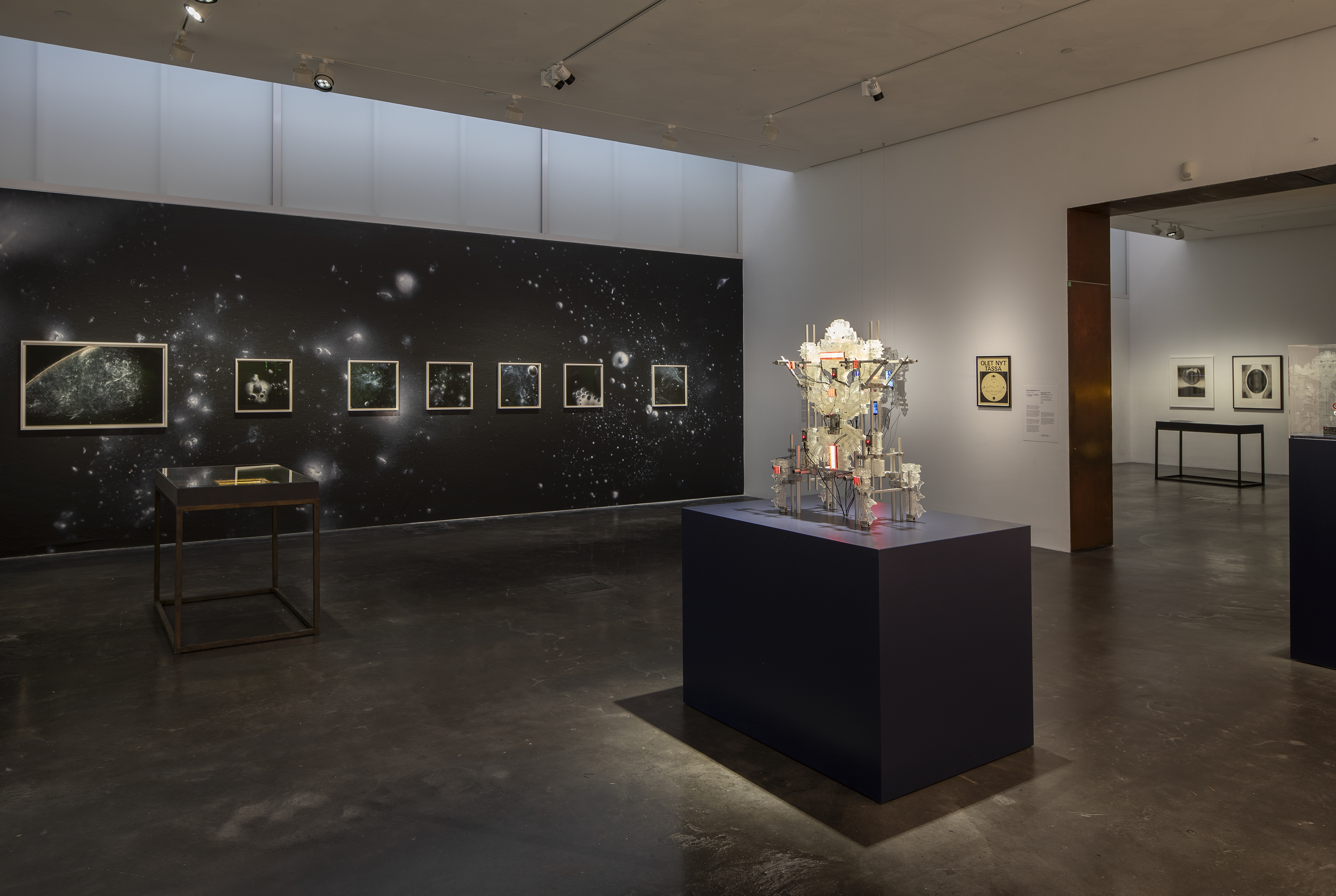 Linnunradalla-ryhmänäyttely syventyy ihmisen ikiaikaiseen tarpeeseen ymmärtää paikkaansa universumissa. Näyttelyyn on koottu 22 taiteilijan ja taiteilijaryhmän teoksia, joiden kautta ihmisen suhdetta avaruuteen ja planeettaamme tarkastellaan. Teokset lähestyvät olemassaolomme peruskysymyksiä mystiikan, 1960-luvulla heränneen avaruusinnostuksen jättämien jälkien, teknologiseen kehitykseen liitettyjen haaveiden sekä ympäristökriisin ja luontokadon valossa.
