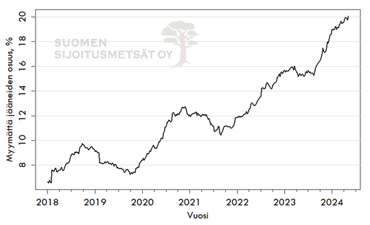 Metsäkiinteistömarkkinoilla on nyt ennätys paljon tarjontaa tiloista. Samalla myyntiajat ovat pidentyneet ja myymättä jääneiden kohteiden osuus on kasvanut.