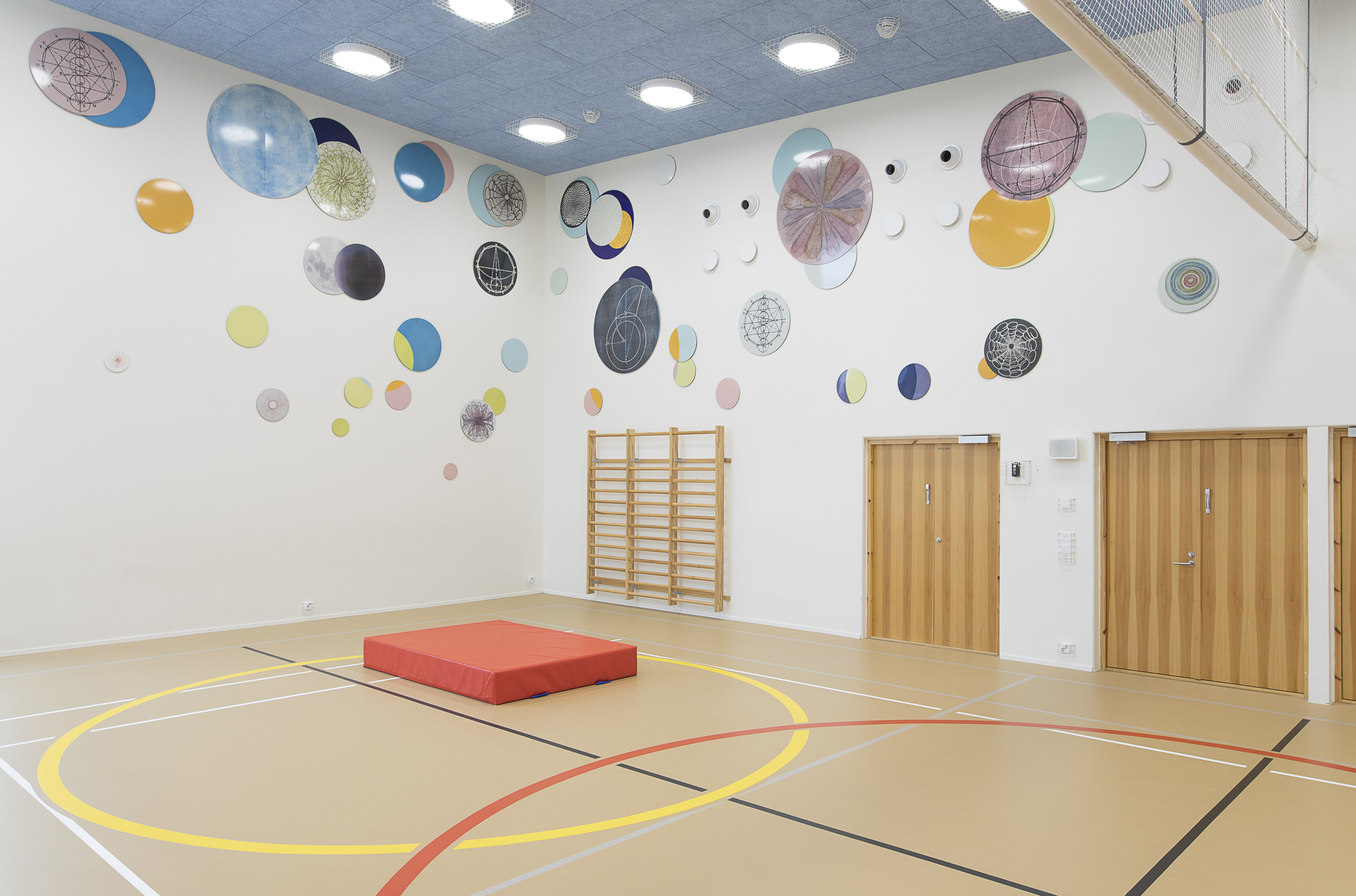 Teos luo tilaa vaellella ja ihmetellä luonnon ja luonnontieteiden äärellä. Kasvien ja solujen rakenteet, kuu ja avaruus, värit sekä vanhojen tiedekirjojen geometriset kaavat yhdistyvät teoksen kuvamaailmassa. Teos tuo näkyväksi geometrista säännönmukaisuutta, jota löytyy niin soluista, sammalen kasvusta kuin planeettojen kiertoradoista. Teoksen ympyrän muodot toistuvat salin lattian pelikentän viivoissa, katon valaisimissa sekä muissa päiväkodin aulatiloissa. Vartiokylässä sijaitsevan päiväkodin uudisrakennuksen on suunnitellut arkkitehtitoimisto A-Konsultit Oy.