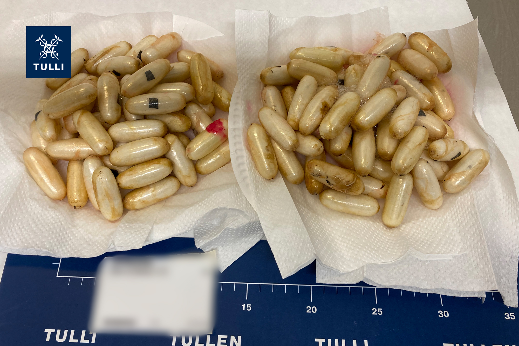 Huumausaineiden maahantuonnin yritys paljastui tullitarkastuksessa syyskuussa 2024 Helsinki-Vantaan lentoasemalla. Tarkastuksessa kävi ilmi, että keski-ikäinen ulkomaalaistaustainen mies oli niellyt 100 kappaletta noin 10 gramman kokaiinikapseleita. Tulli takavarikoi henkilöltä kokonaisuudessaan 998 grammaa kokaiinia.