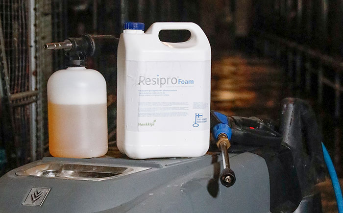 Resipro Foam on kotimainen Avainlippu-tuote, joka valmistetaan kiertotalouden periaatteiden mukaisesti. Tuote puhdistaa tehokkaasti ja toisin kuin kotieläintiloilla yleisesti käytettävät emäksiset pintapesuaineet, Resipro Foam on miedon hajuinen eikä sisällä syövyttäviä tai korrosoivia aineita. Pesun yhteydessä Resipro Foamista ei höyrysty haitallisia kaasuja. Tuote sopii käytettäväksi metalli-, betoni-, muovi- ja puupinnoilla kotieläinrakennuksissa.