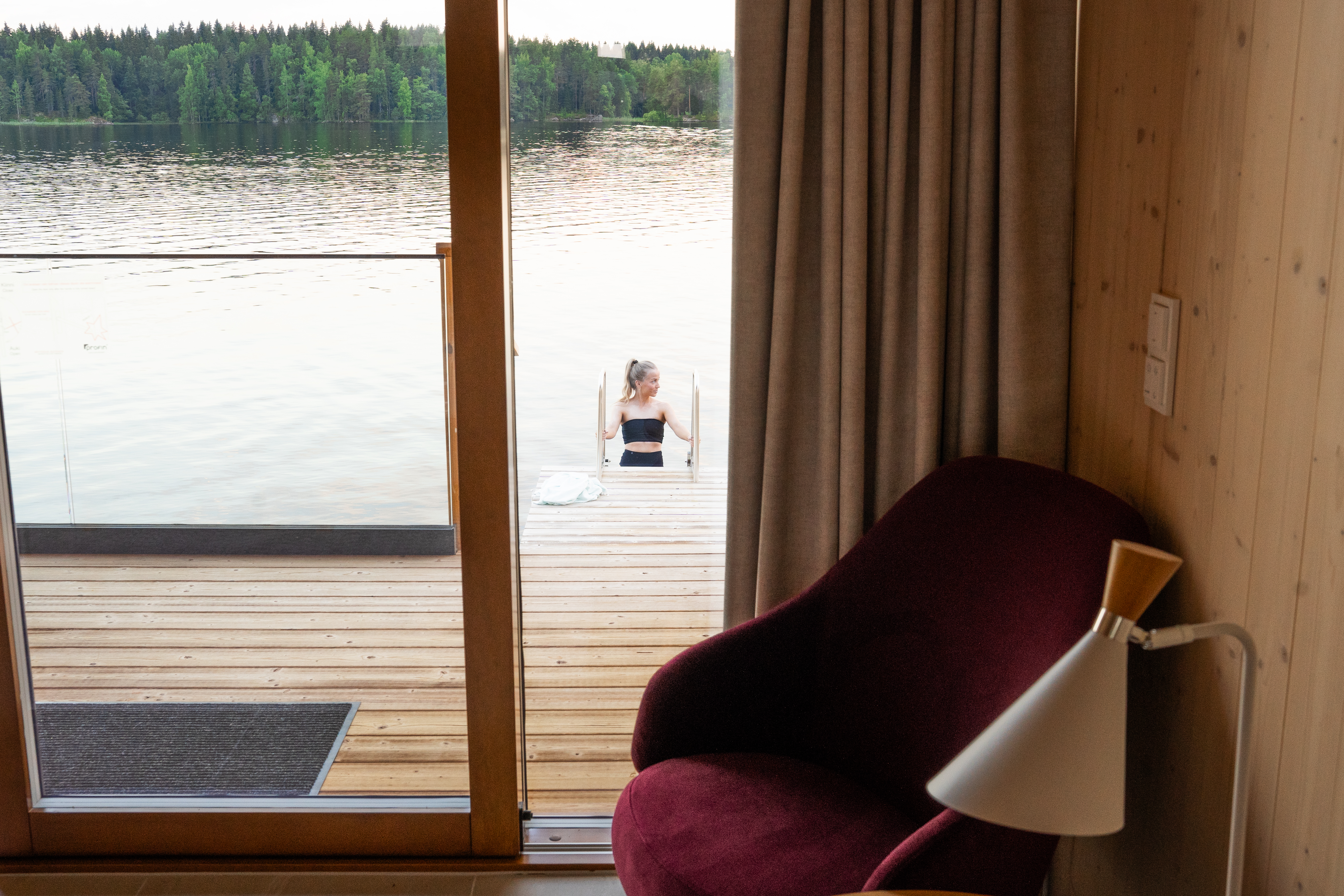 Aamulla avatessasi sviitin liukuovet, voit pulahtaa raikkaaseen järveen