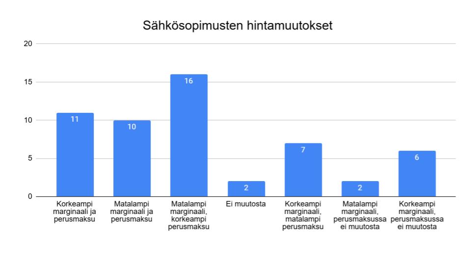 Yleisimpänä muutoksena havaittiin marginaalien lasku ja perusmaksujen nousu. Koska perusmaksu vaikuttaa enemmän kokonaishintaan kuin marginaali, on tällä merkittävämpi vaikutus kuluttajan sähkölaskuun ja hyödyttää myös sähköyhtiöitä. Vaikka marginaalin prosentuaalinen hintamuutos olisi korkea, ovat erot todellisuudessa pieniä.