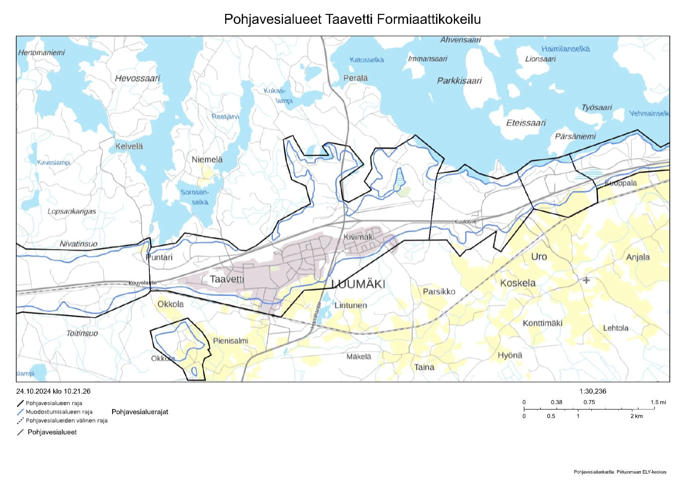 Pohjavesialueet Taavetin formiaattikokeilussa.
