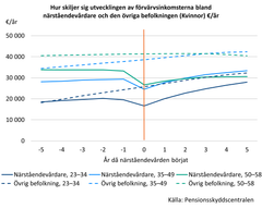 I undersökningen konstaterades att närståendevårdarnas inkomster minskade betydligt det år då avtalet om närståendevård ingicks. Dessutom var närståendevårdarnas genomsnittliga förvärvsinkomster mindre än den övriga befolkningens redan fem år före närståendevårdarskapet.