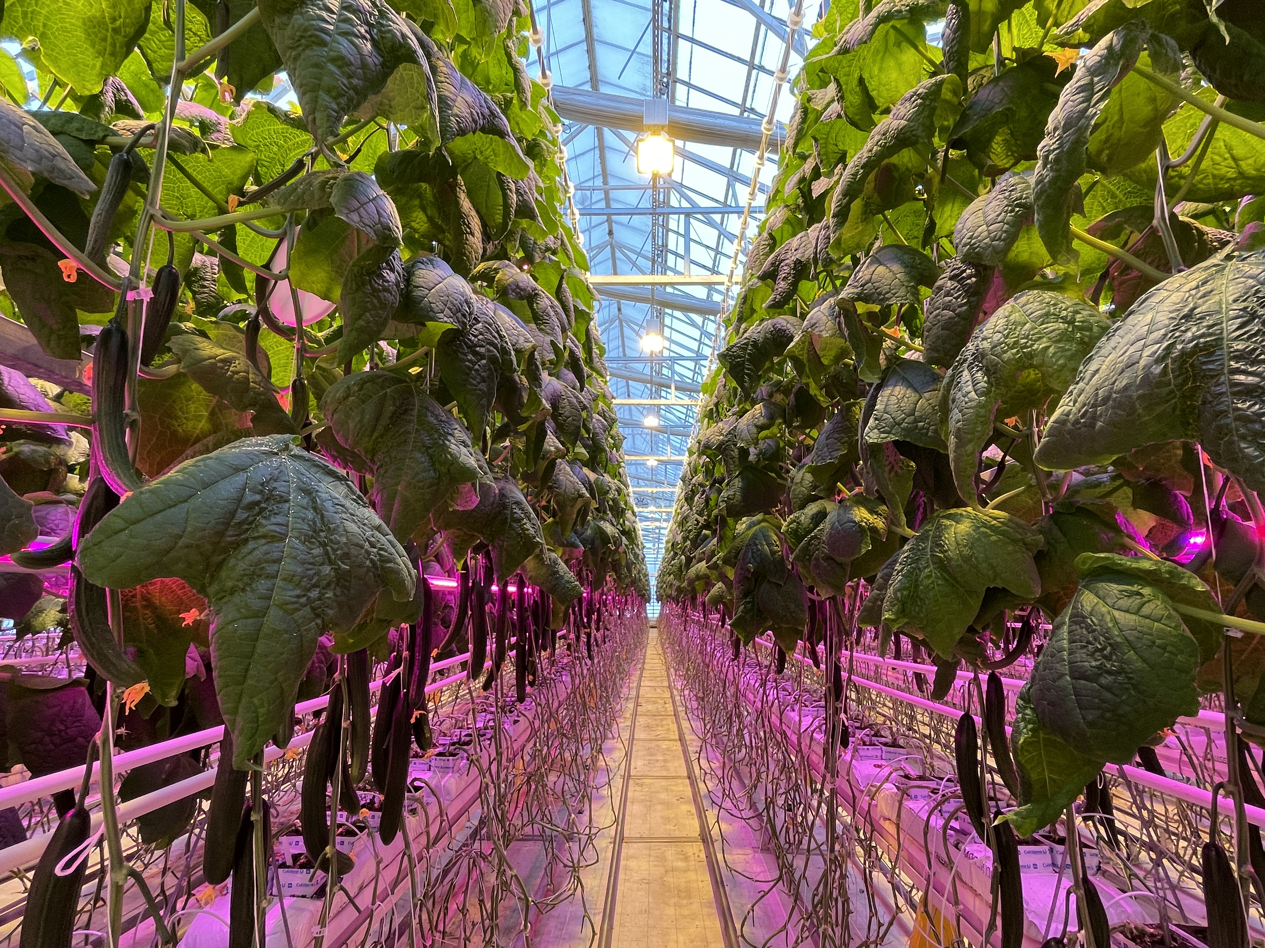Närpes Grönsakers odlingar växer under LED-belysning. I vintermörkret bidrar de lysande växthusen samtidigt till försörjningsberedskapen.
