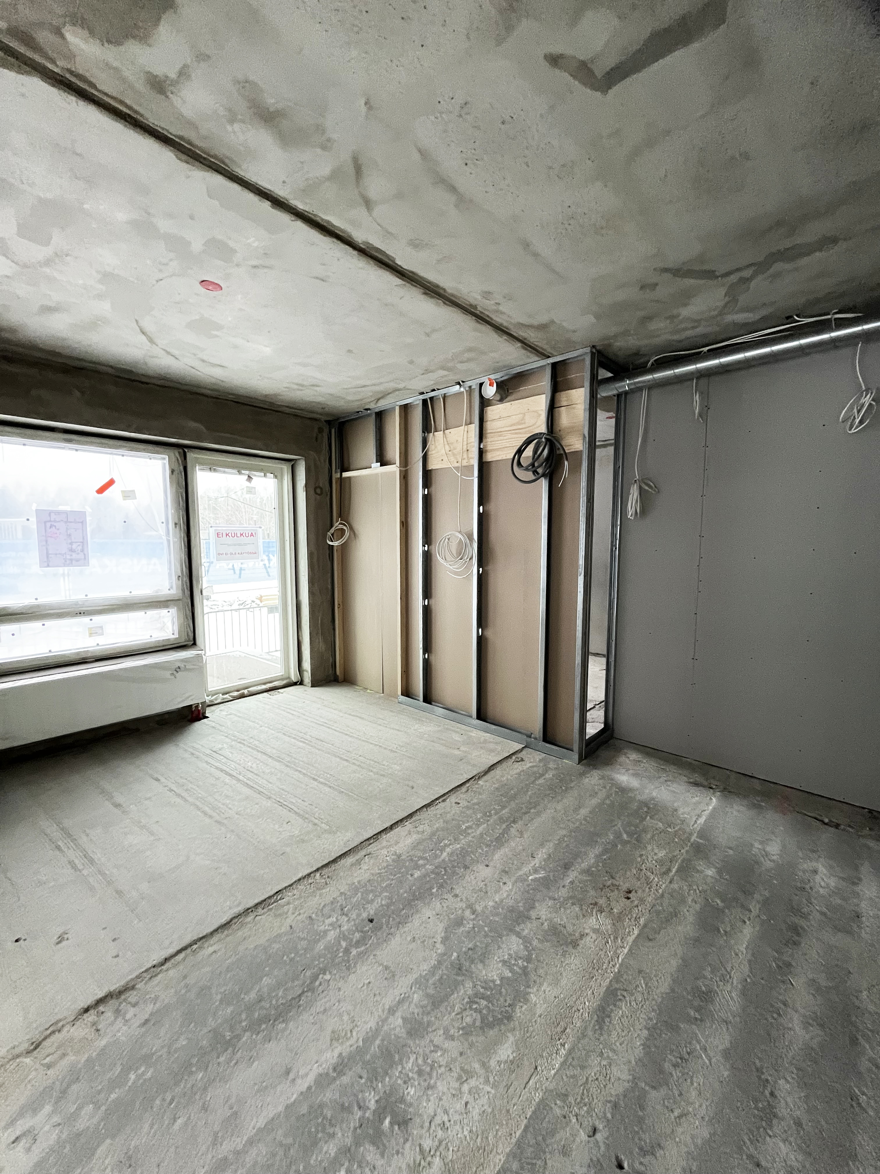 Betonielementit asennettiin väestösuojan päälliseen välikerrokseen, joka sopi tässä kohteessa parhaiten mittasuhteiltaan uudelleenkäytettäville elementeille.