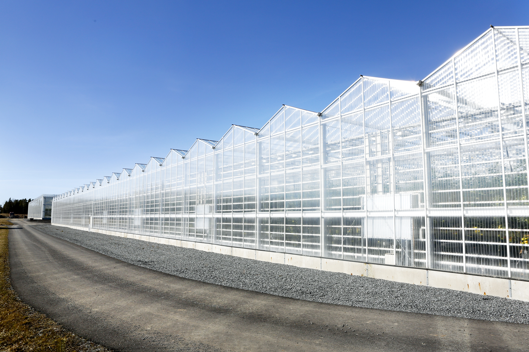 Närpes Grönsakers odlingar växer under LED-belysning. I vintermörkret bidrar de lysande växthusen samtidigt till försörjningsberedskapen.