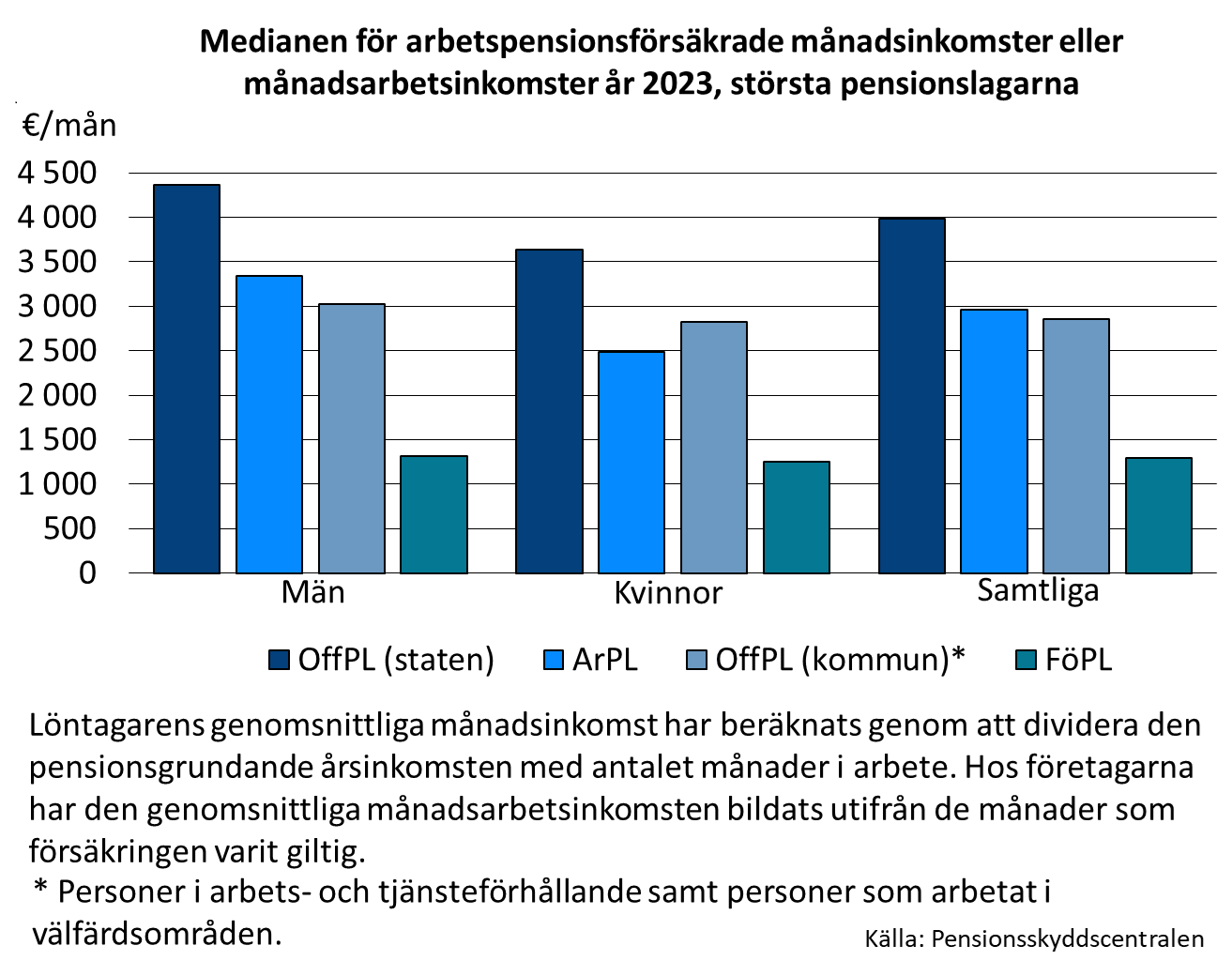 Enligt PSC:s statistik var löntagarnas genomsnittliga arbetspensionsförsäkrade månadsinkomst 3 425 euro och medianen 3 105 i månaden. Kvinnornas medianinkomst var 17 procent mindre än männens medianinkomst.