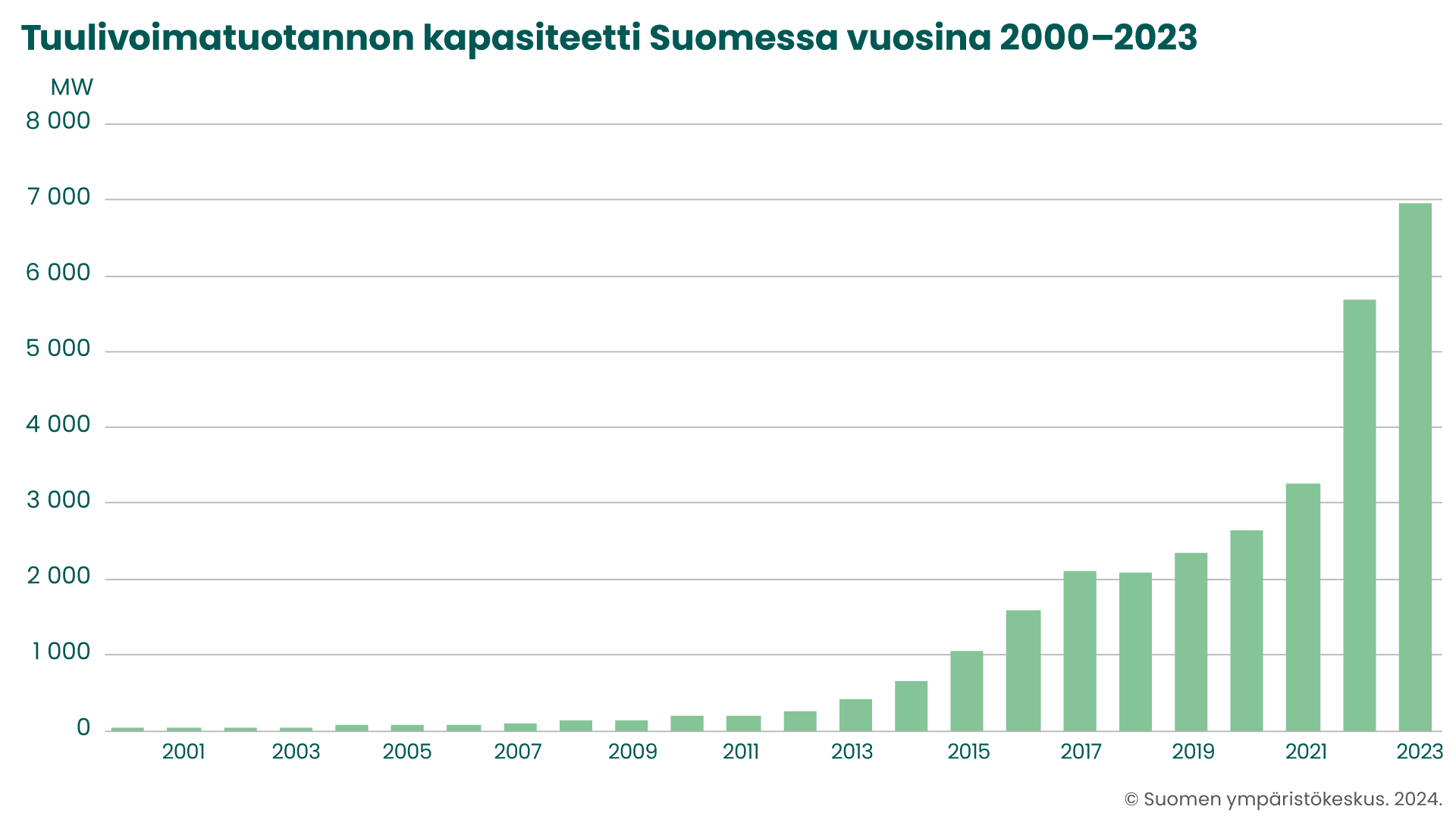 Energiasektorilla kivihiilen ja turpeen käyttö väheni, mikä laski omalta osaltaan kaukolämmön päästöjä. Tuulivoiman rakentaminen on nopeutunut Suomessa erityisesti vuoden 2015 jälkeen. Vuonna 2023 Tuulivoiman tuotantokapasiteetti kasvoi noin 1 200 MW vuoteen 2022 verrattuna, kokonaiskapasiteetti oli noin 7 000 MW. Lisäksi ydinvoiman tuotanto kasvoi Olkiluoto 3 -voimalan käyttöönoton seurauksena. Nämä yhdessä laskivat sähkön tuotannon päästöintensiteettiä huomattavasti Suomessa.