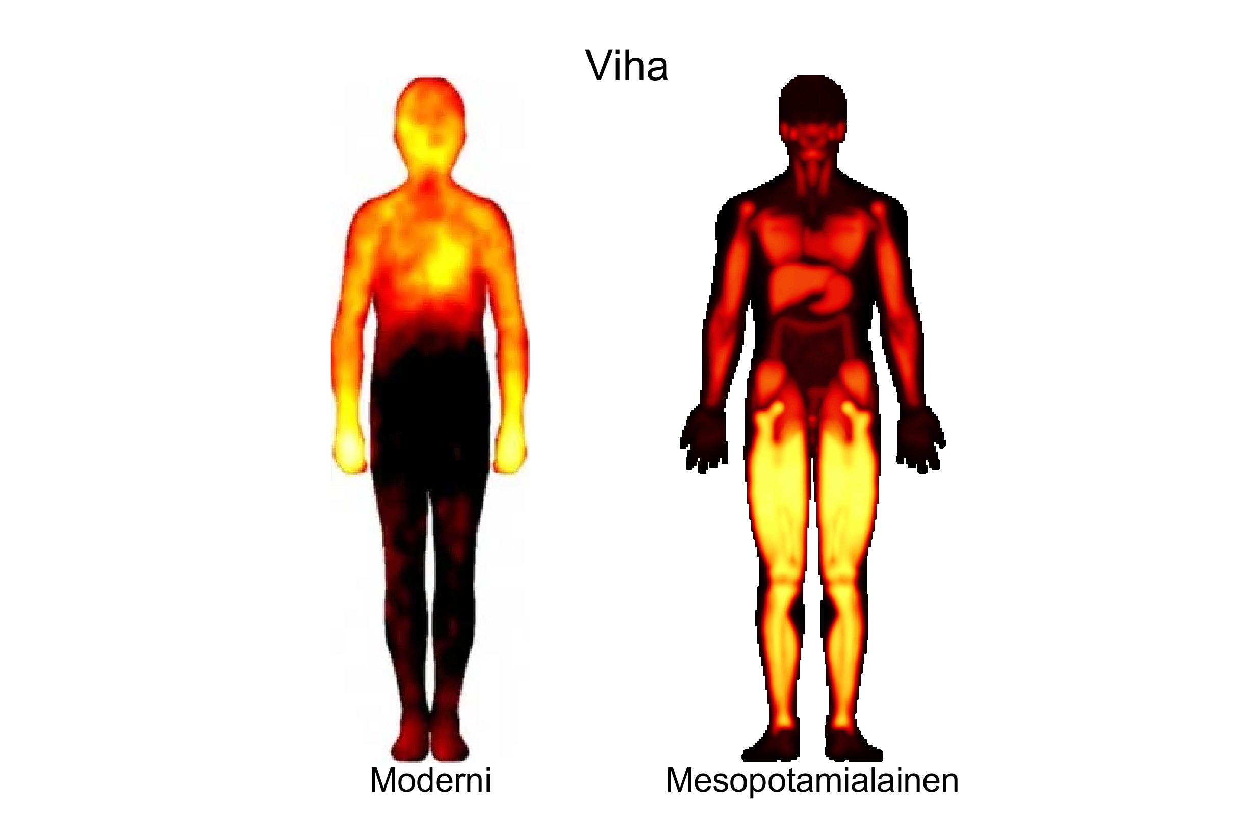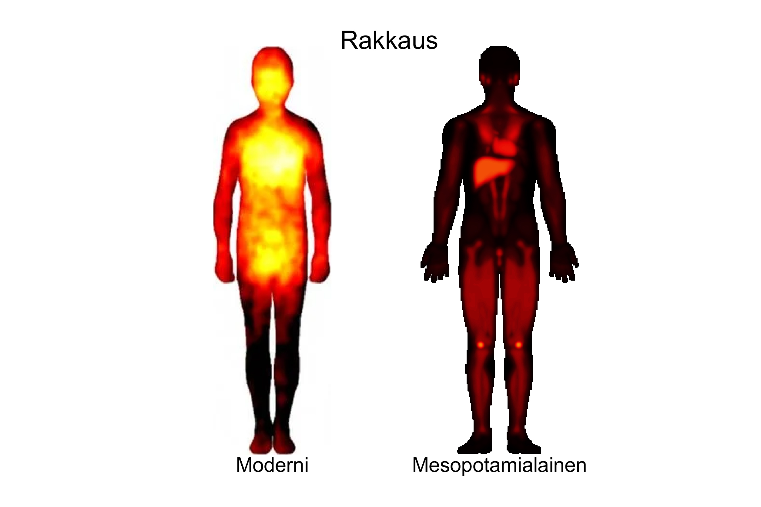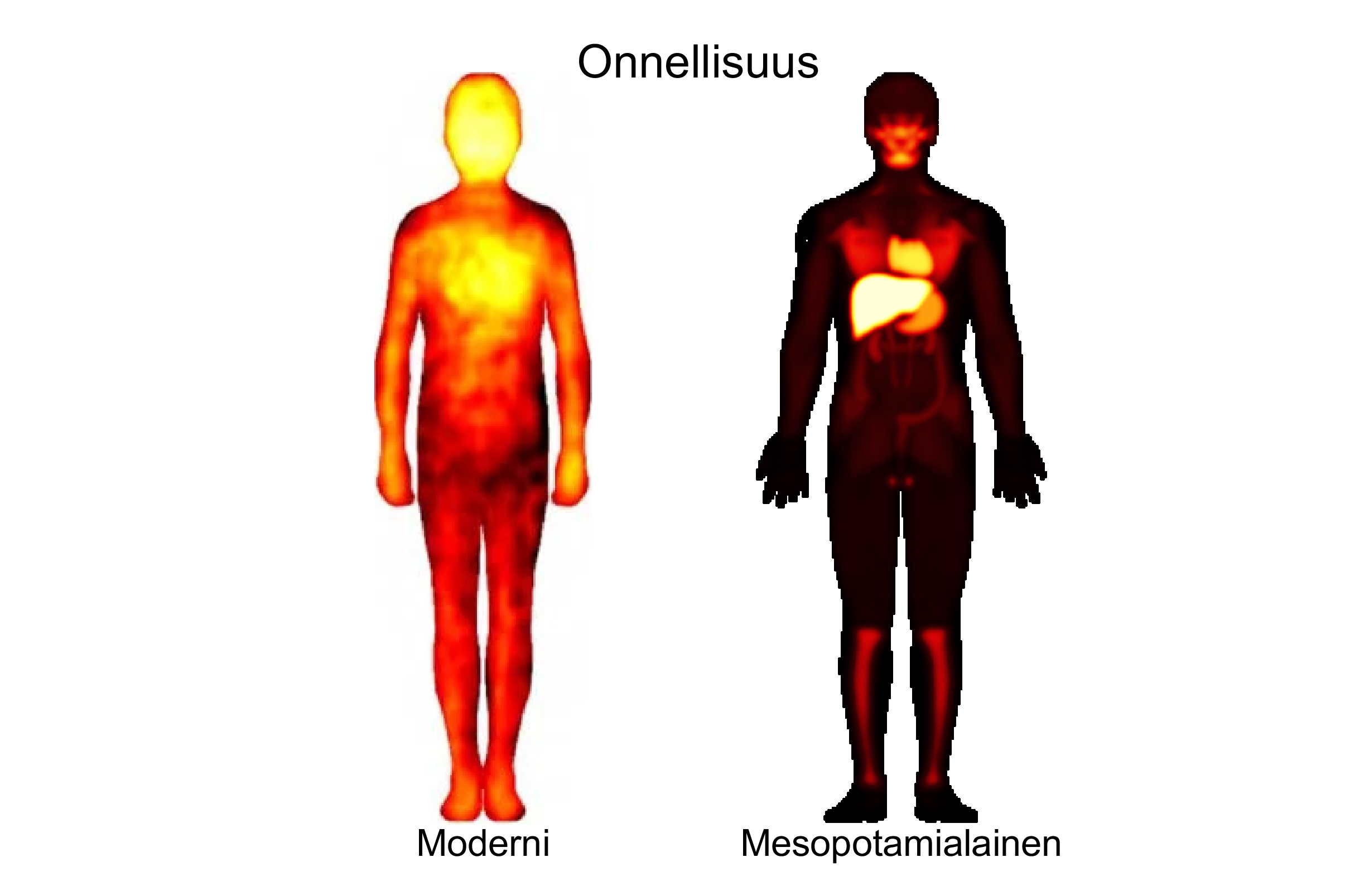 ”Jos muinaista mesopotamialaista onnellisuuden kehokarttaa verrataan moderniin tunteiden kehokarttaan, se on muuten pitkälti samanlainen, mutta maksa hohtaa siinä silmiin pistävästi”, kertoo Aalto-yliopistossa vieraileva tutkija Juha Lahnakoski tutkimuskeskus Jülichistä ja Düsseldorfin LVR-klinikalta.