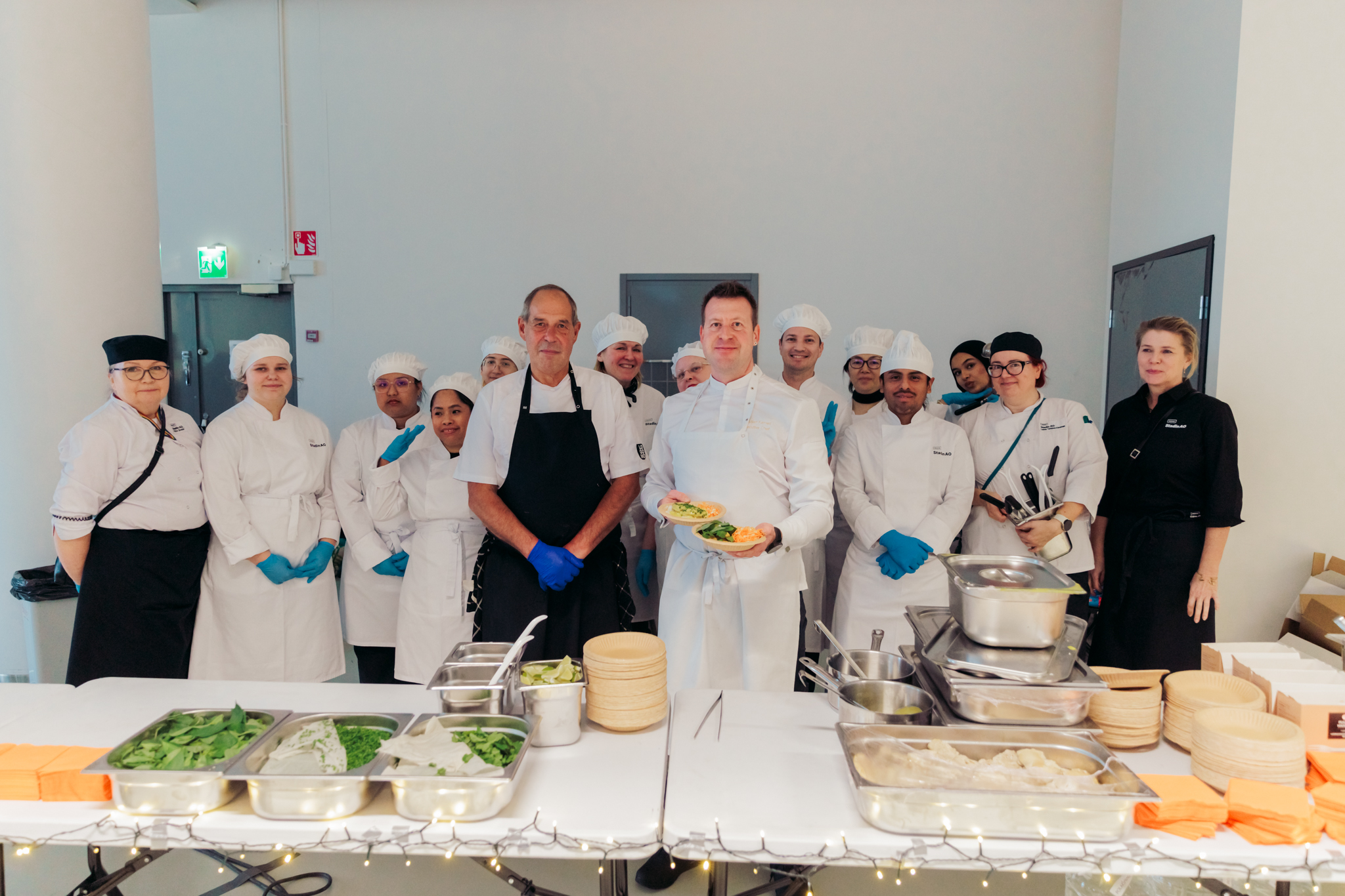 Ruokaa ja tarvikkeita olivat lahjoittaneet Arla, Leipomo Rosten, Jalotofu, Pirkka, Oatly, Raisio, Elovena ja Ikea.