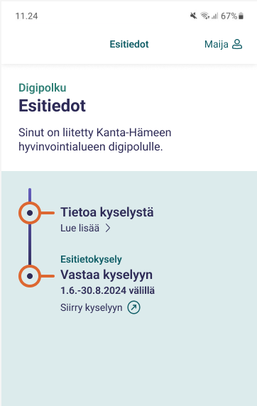 Kysely tulee ensisijaisesti täyttää joko sovelluksen tai asiointipalvelun kautta, mutta tarvittaessa kyselyn voi täyttää myös paikan päällä ennen vastaanottoa. Kysely löytyy 9.12. alkaen myös tulostettavana versiona osoitteesta omahame.fi/lomakkeet.