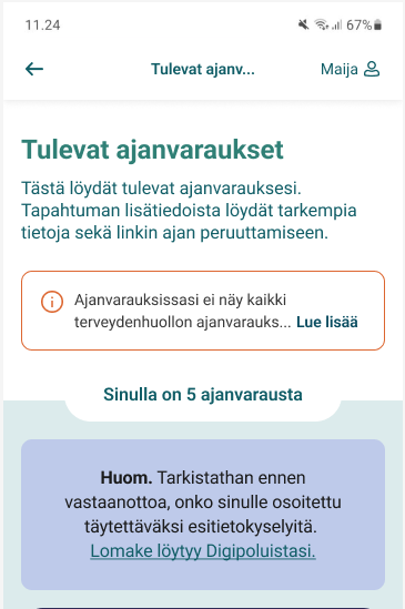 Tietoja tarvitsee tarkistaa ja päivittää vain, jos ne ovat muuttuneet. Jos asiakkaalla on toistuvia ajanvarauksia, kysely aktivoituu vain, jos sitä ei ole täytetty viimeisen kolmen kuukauden aikana.
