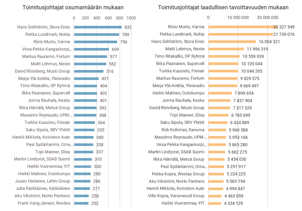Vaikuttavimmat toimitusjohtajat toimituksellisessa mediassa