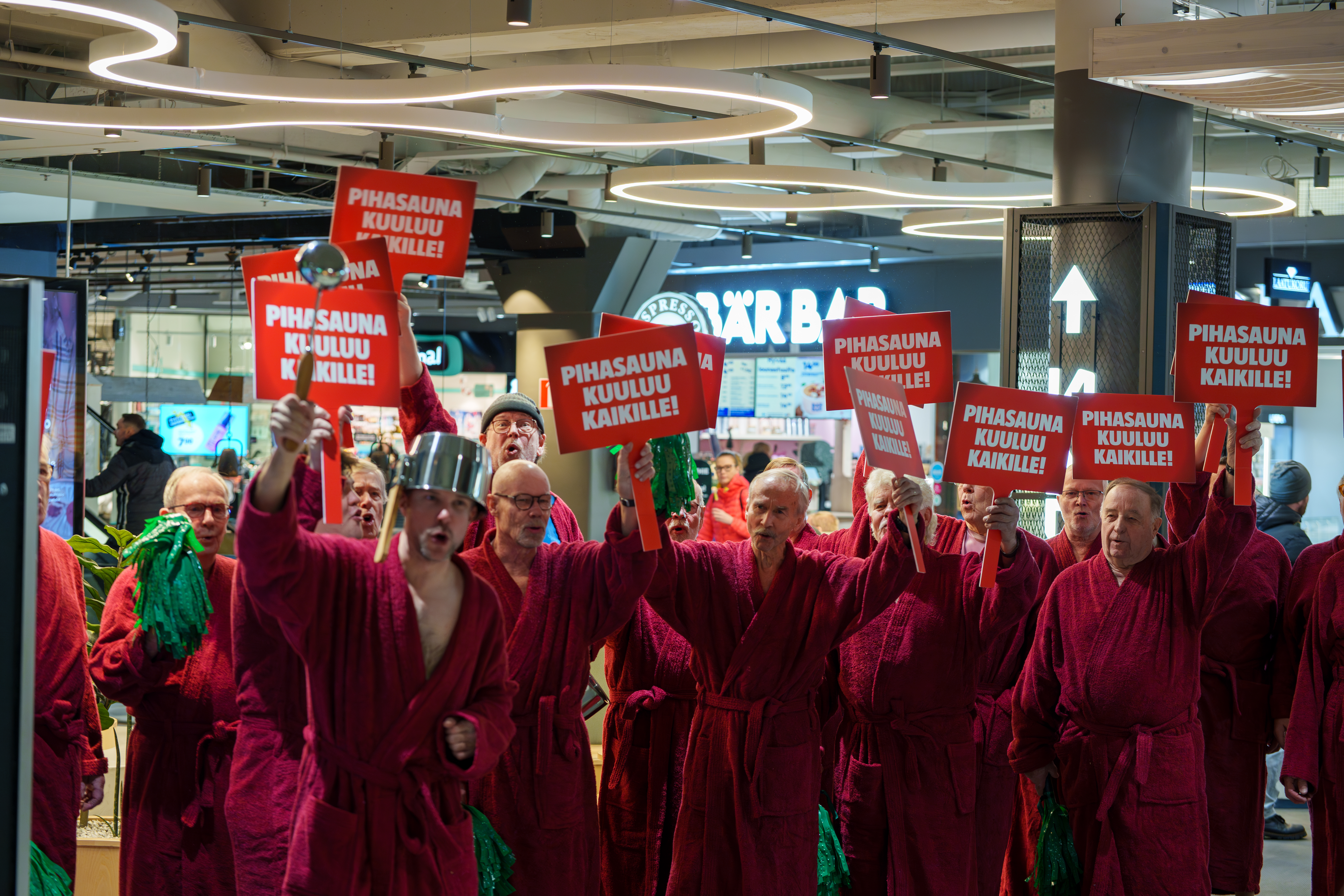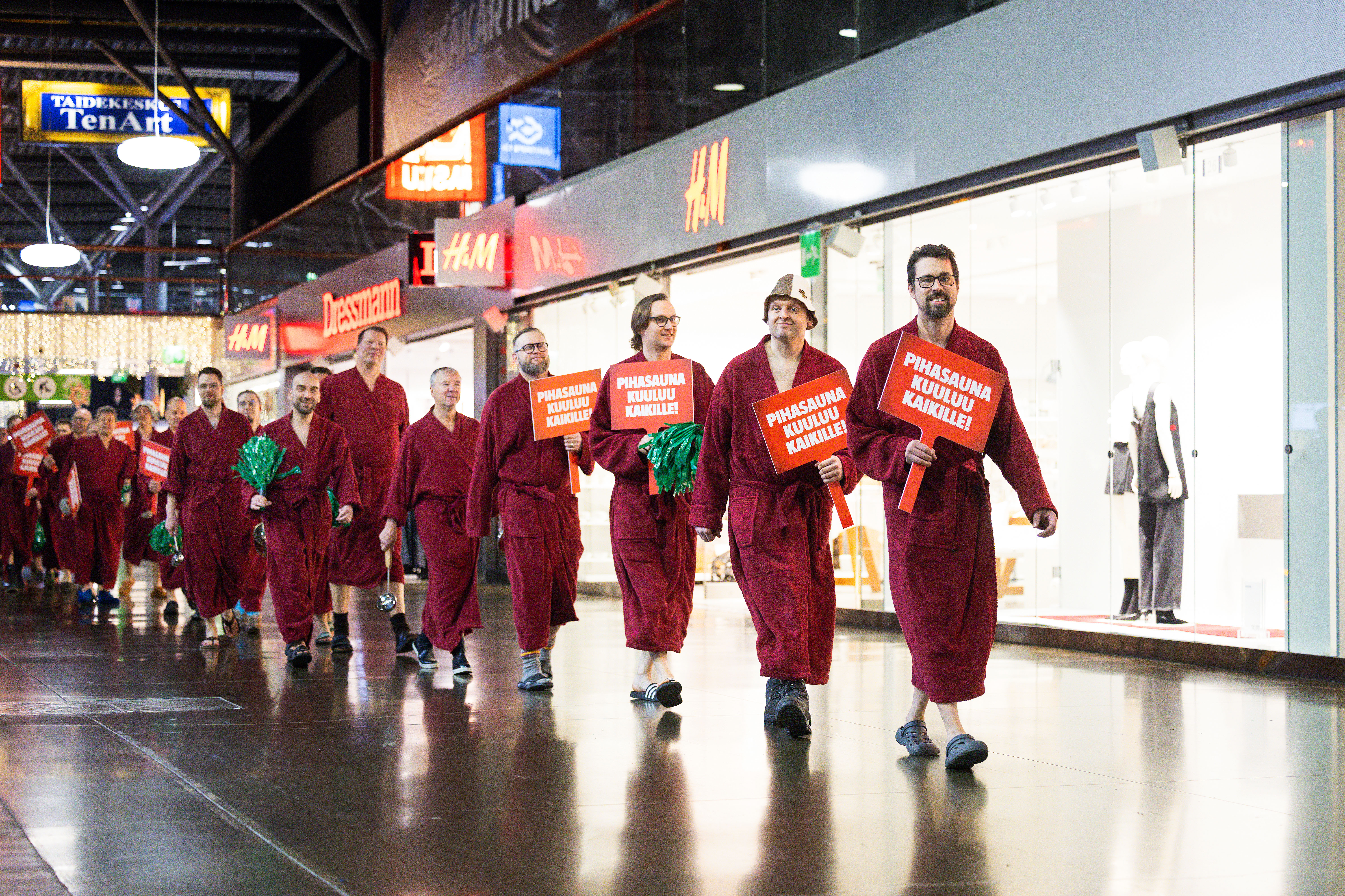 Sauna-aiheinen flash mob yllätti viidessä kaupungissa viime lauantaina – mistä oikein on kyse?