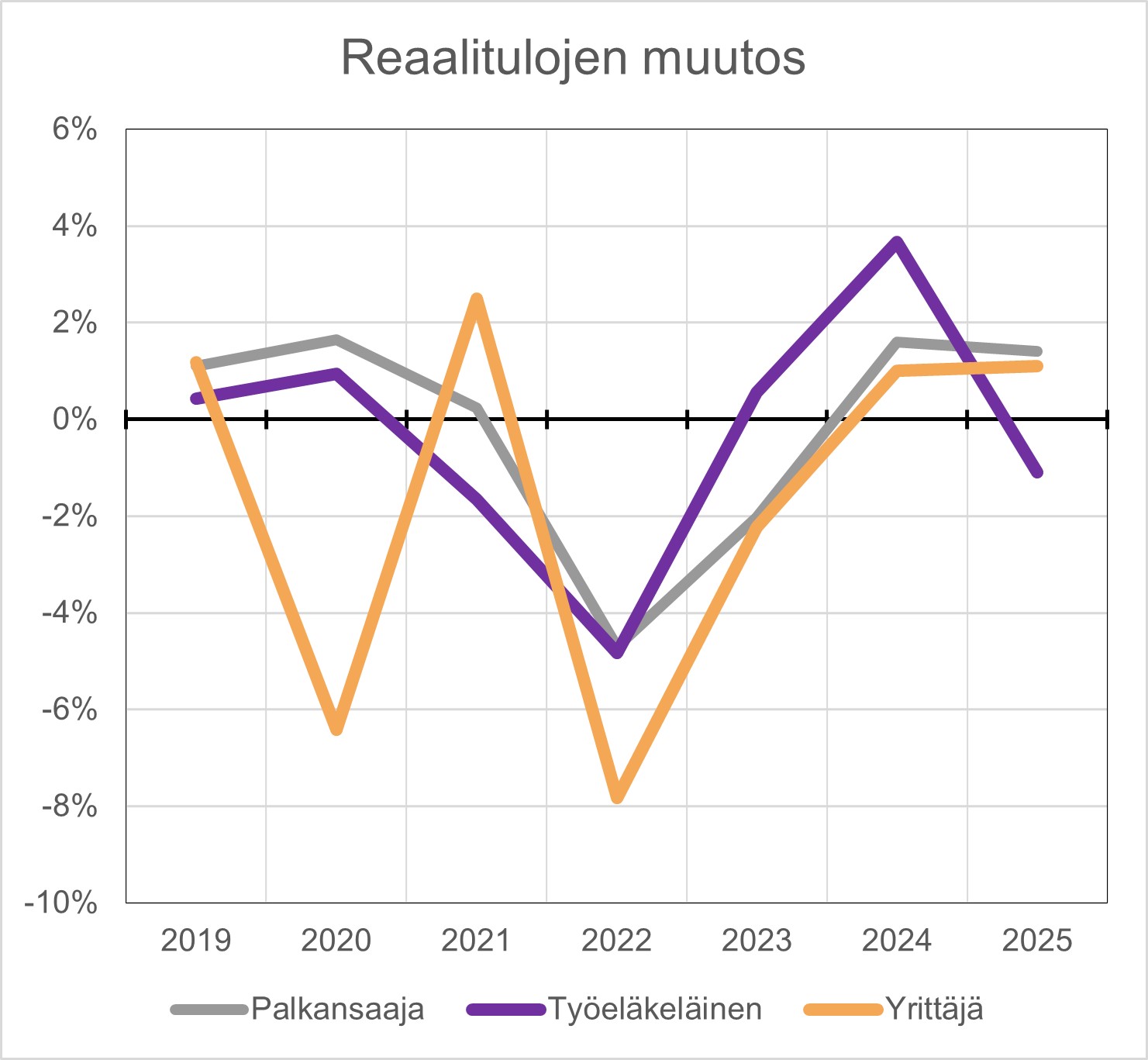 Myös yrittäjien ostovoima kääntyy kasvuun tänä vuonna laantuneen inflaation myötä. Monilla yrittäjillä on ollut haastavat ajat talouden heikon tilanteen takia. Kotitalouksien laantunut kulutuskysyntä on heikentänyt yrittäjien hinnoitteluvoimaa, mikä rajoittaa yrittäjien tulokehitystä. Yrittäjien ostovoima kasvaa sekä tänä että ensi vuonna noin yhden prosentin.