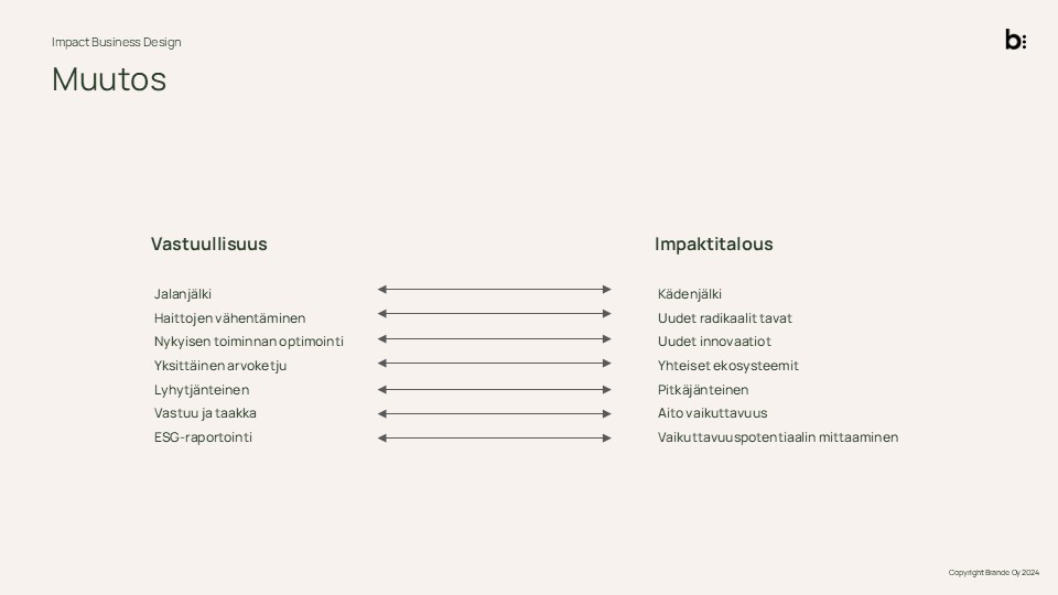 Tarvitaan kestävä muutos, siirtyminen impaktitalouteen