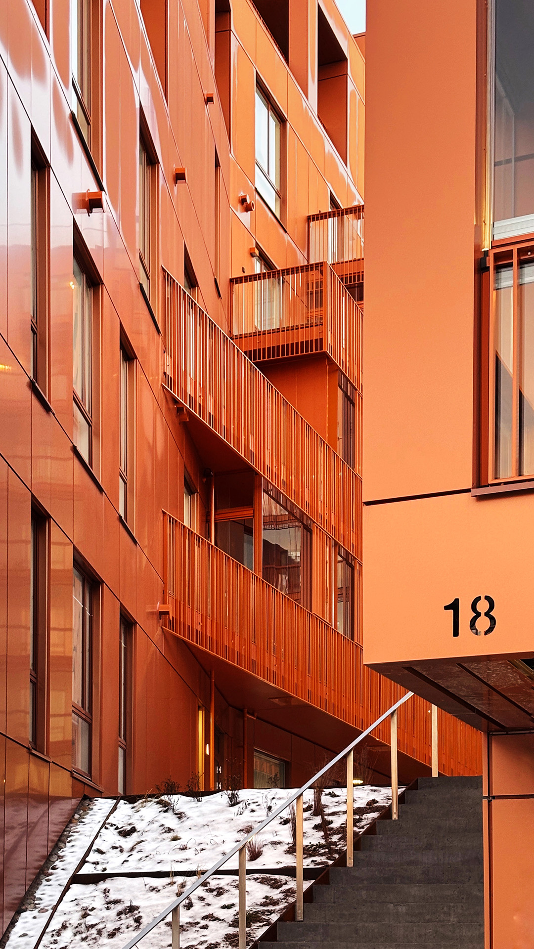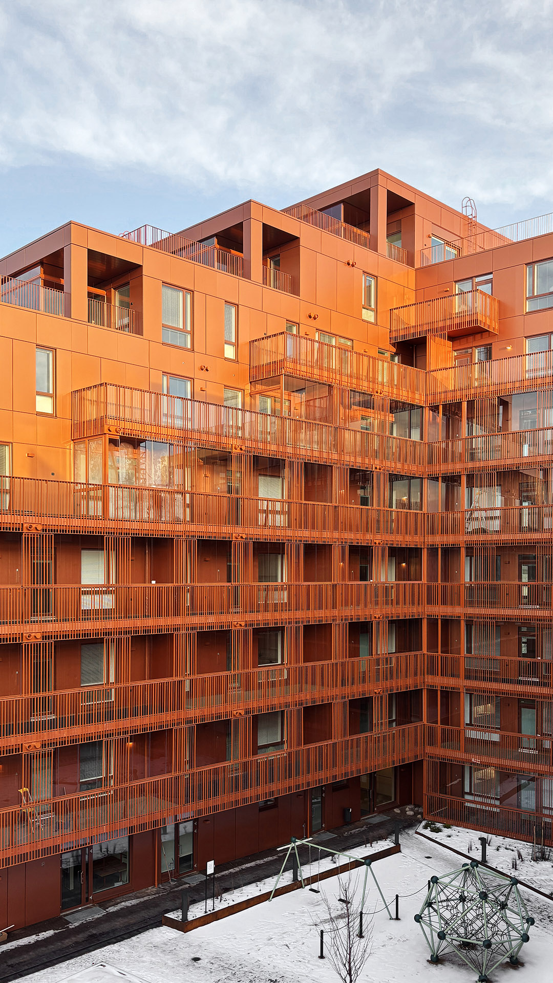 Arkkitehtuuriltaan poikkeuksellinen terassitalo Ambra valmistui Helsingin Jätkäsaareen
