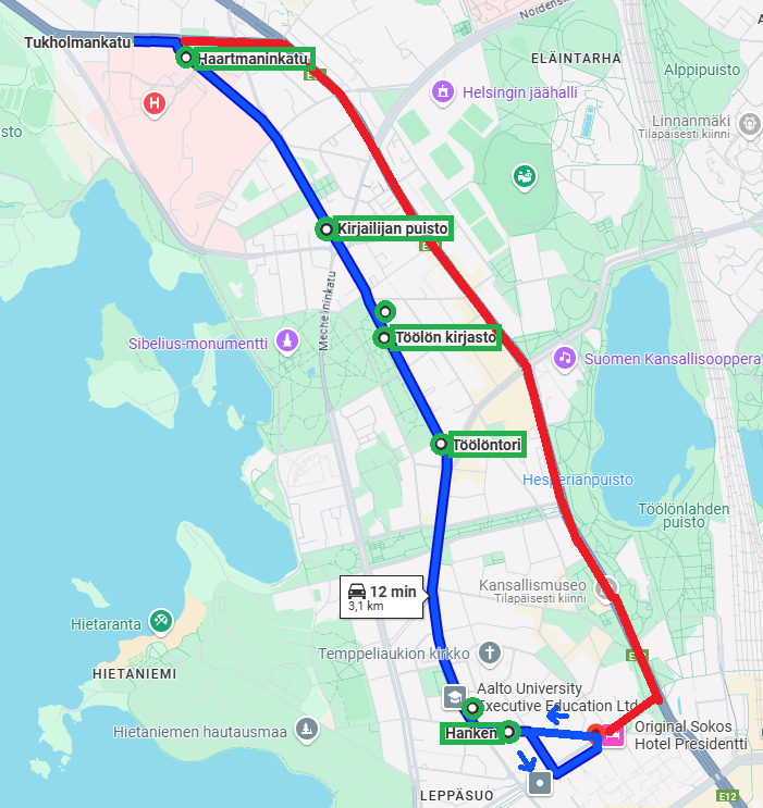 Linjerna U280, U280A, U282, U282B och U285 flyttas tills vidare till en avvikande rutt i Helsingfors från och med 7.1.2025