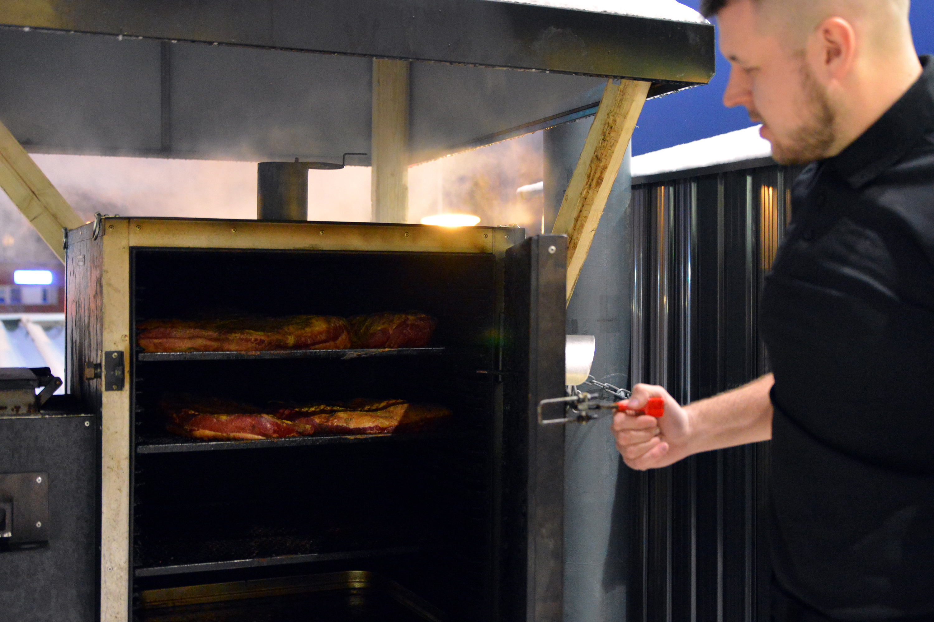 Pyynikin Smokehousen päivä alkaa varhain, sillä aamuyhdeksältä naudanrinta lepäilee jo savussa. Tuoksu houkuttelee paikalle usein paitsi nälkäistä, myös tiedonjanoista väkeä.