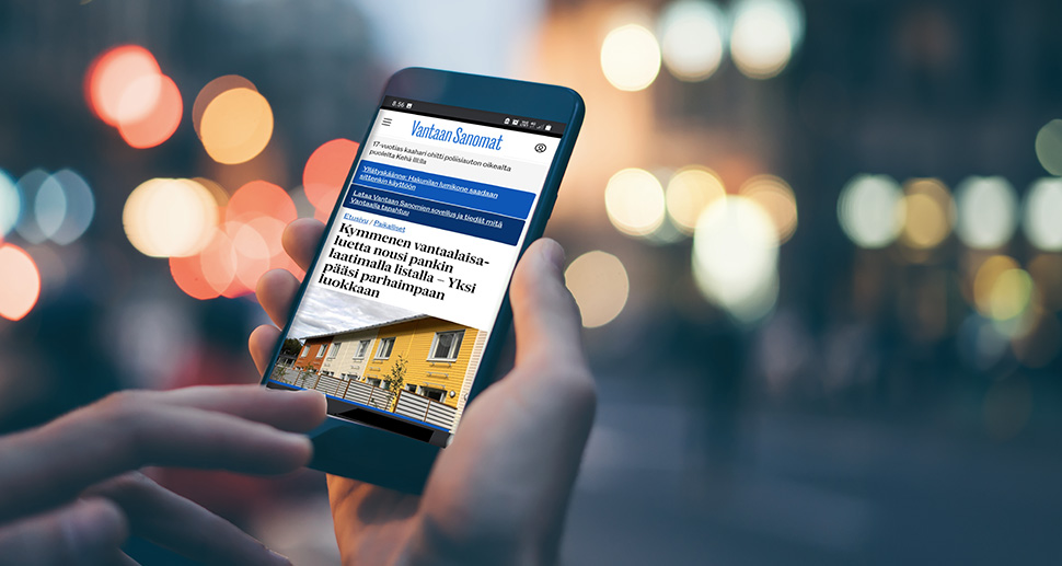 Vantaan Sanomien kaikki digisisällöt voi jatkossa lukea tekemällä tilauksen hintaan 5,49 € / kuukausi. Parhaan lukukokemuksen varmistamiseksi kannattaa ladata Vantaan Sanomien sovellus.