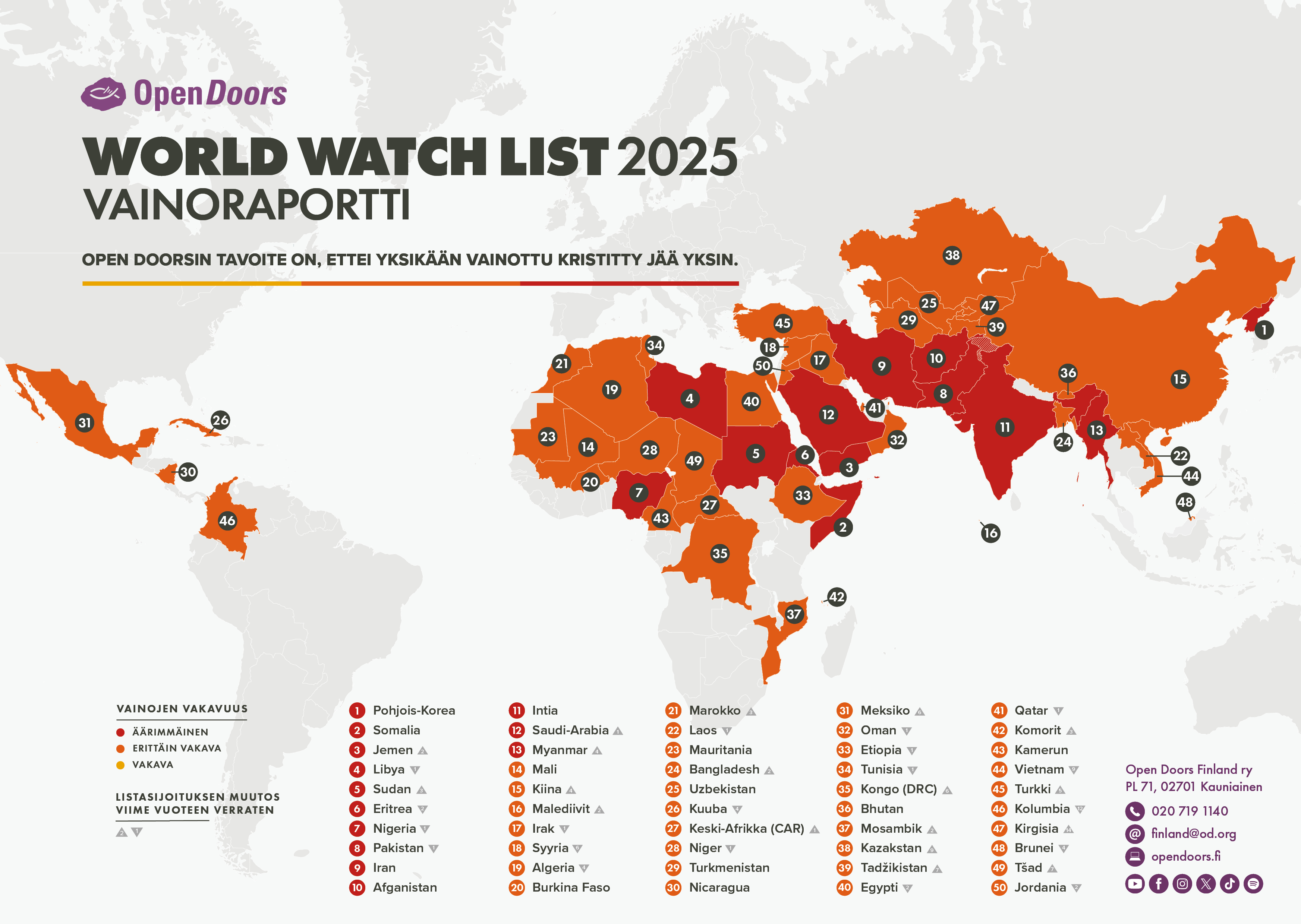 Open Doors on kansainvälinen, poliittisesti sitoutumaton ja ekumeeninen avustusjärjestö, joka palvelee vainottuja kristittyjä yli 70 kohdemaassa.