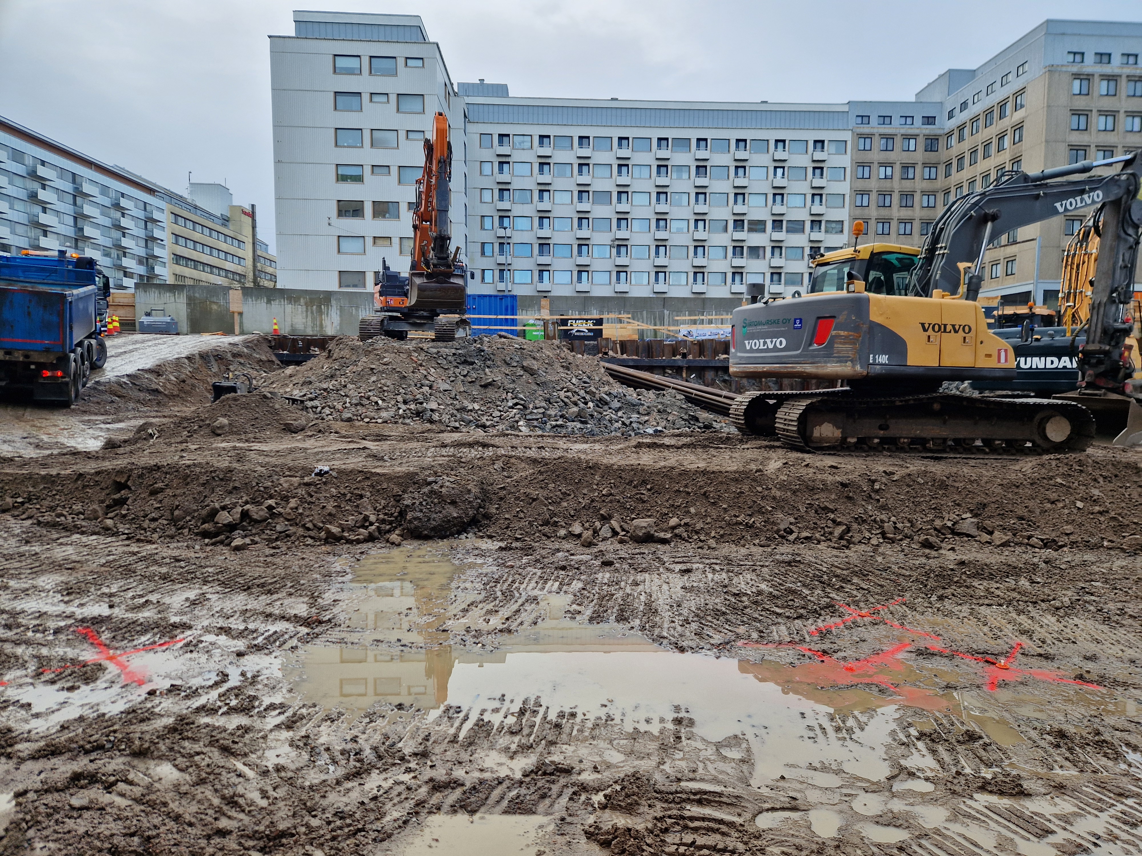 Aninkaistenkadulla Turun ydinkeskustassa alkaa uuden kerrostalon rakentaminen massiivisten purkutöiden jälkeen
