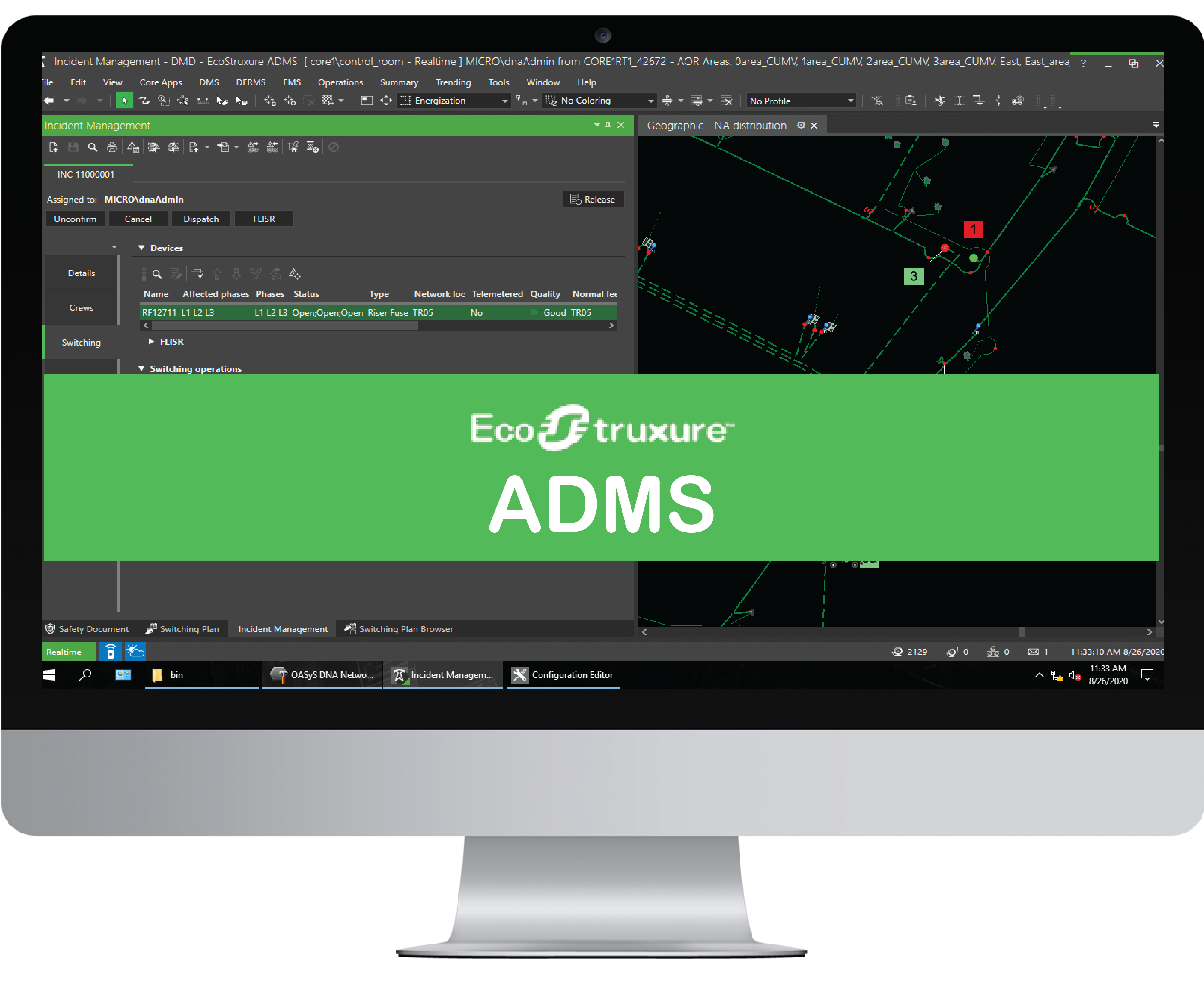 - Ecostruxure ADMS on turvallinen ja luotettava ratkaisu tulevaisuuden sähkölaitokselle. Edistyksellinen valvomoteknologia tarjoaa valvonta-, analysointi- ja ohjaustyökaluja, jotka kaikki perustuvat yhtenäiseen sähkönjakeluverkkomalliin.