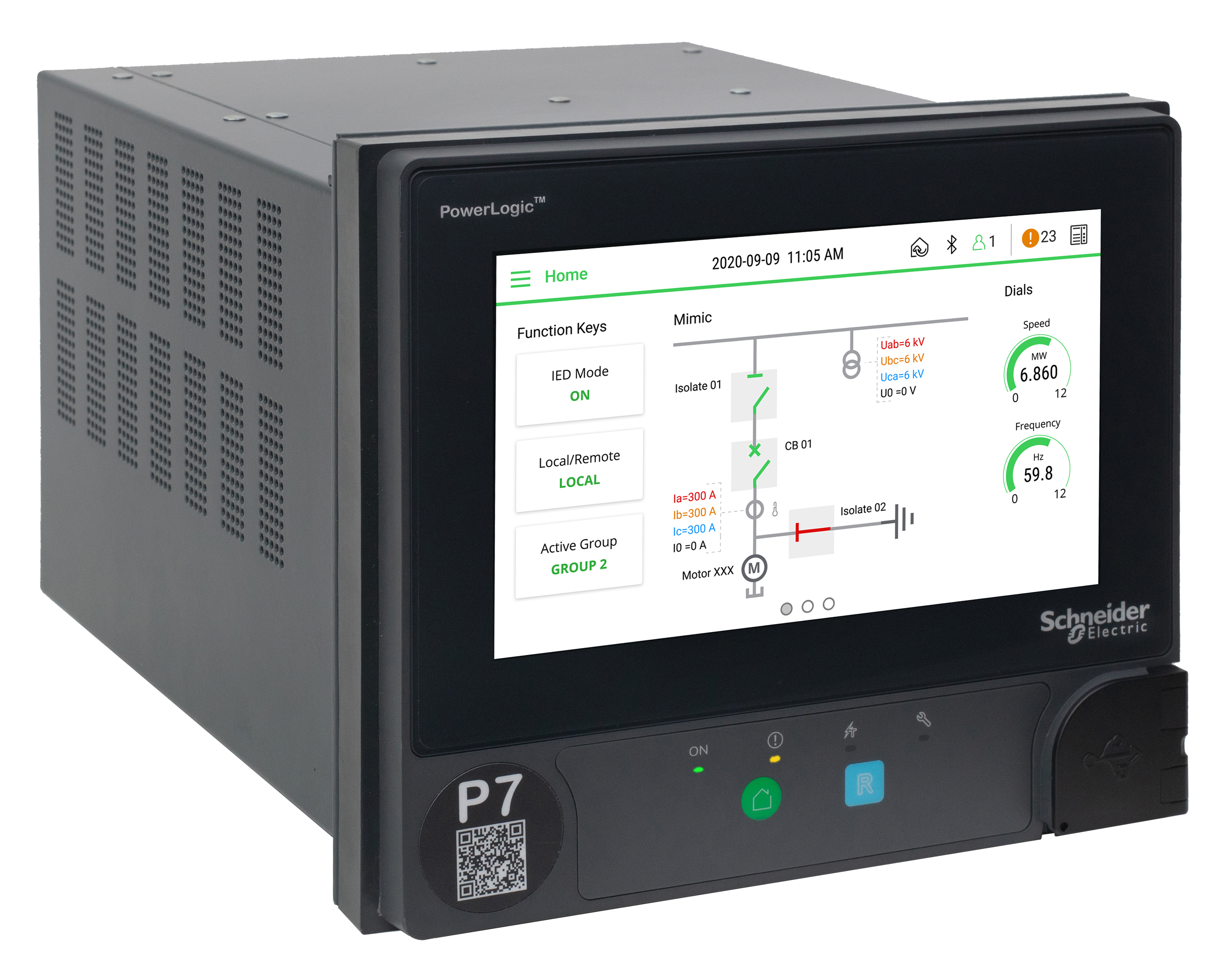 - PowerLogic P7 on uusi huippuluokan suojausjärjestelmä, joka on suunniteltu erityisesti edistyneisiin teollisiin sovelluksiin ja kriittisiin asennuksiin jakeluverkossa. Järjestelmä toimii virtuaalisena alustana, jonka ansiosta suojausjärjestelmän käyttö on yksinkertaisempaa ja joustavampaa muun muassa 7 tuuman värinäytön ansiosta. Modulaarisen järjestelmän kyberturvallisuus on taattu, sillä se on kolmannen osapuolen sertifioiman IEC 62443 SL2 -standardin mukainen.